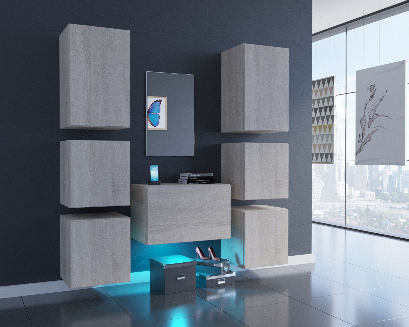 • F7 Flur Dielenmöbel Garderobenschrank Dielenschrank Schuhschrank Flurmöbel Spiegel