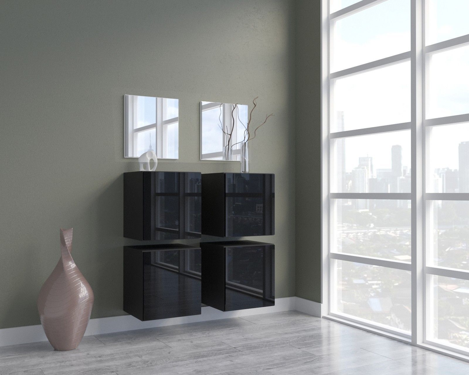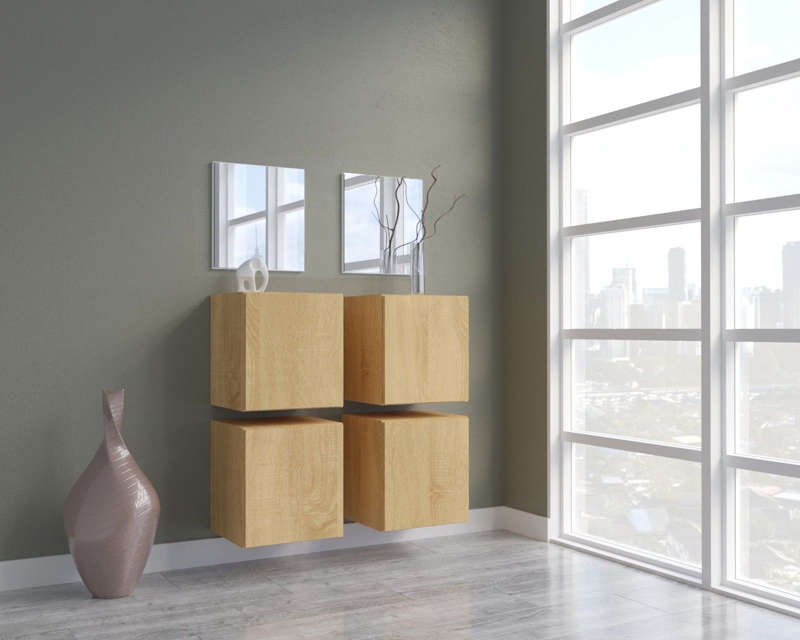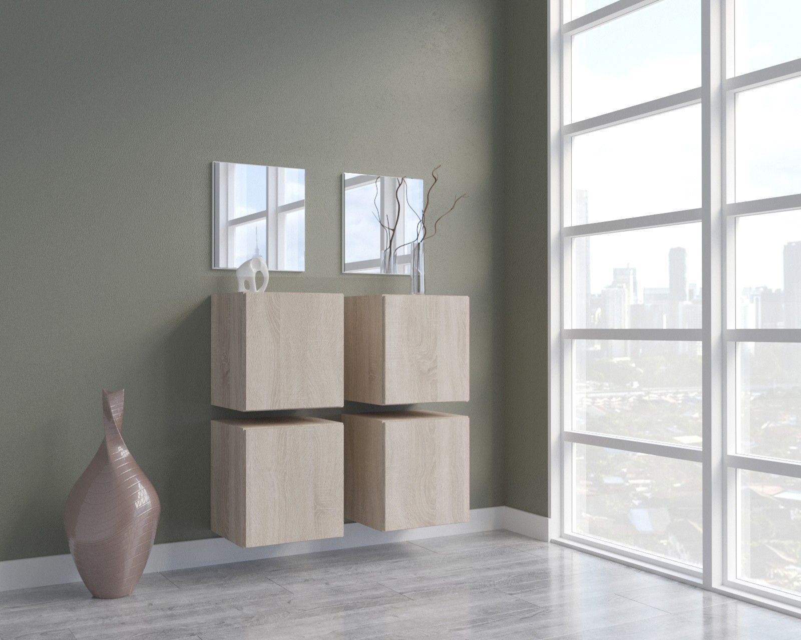 F4 Flur Dielenmöbel Garderobenschrank Dielenschrank Schuhschrank Flurmöbel Spiegel