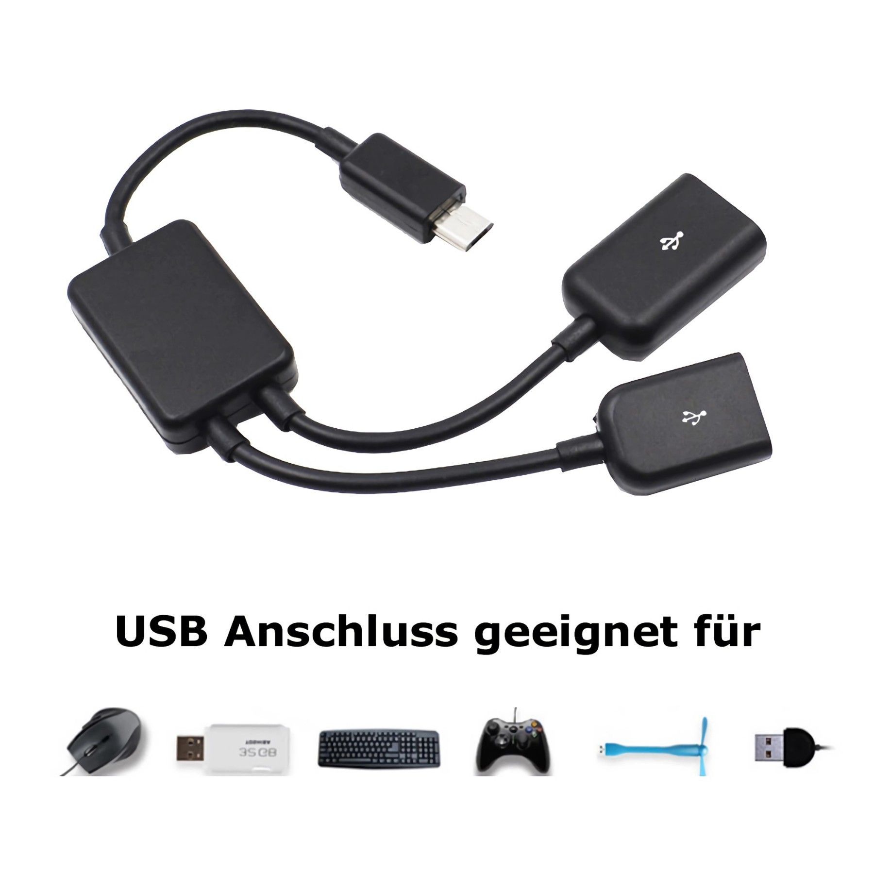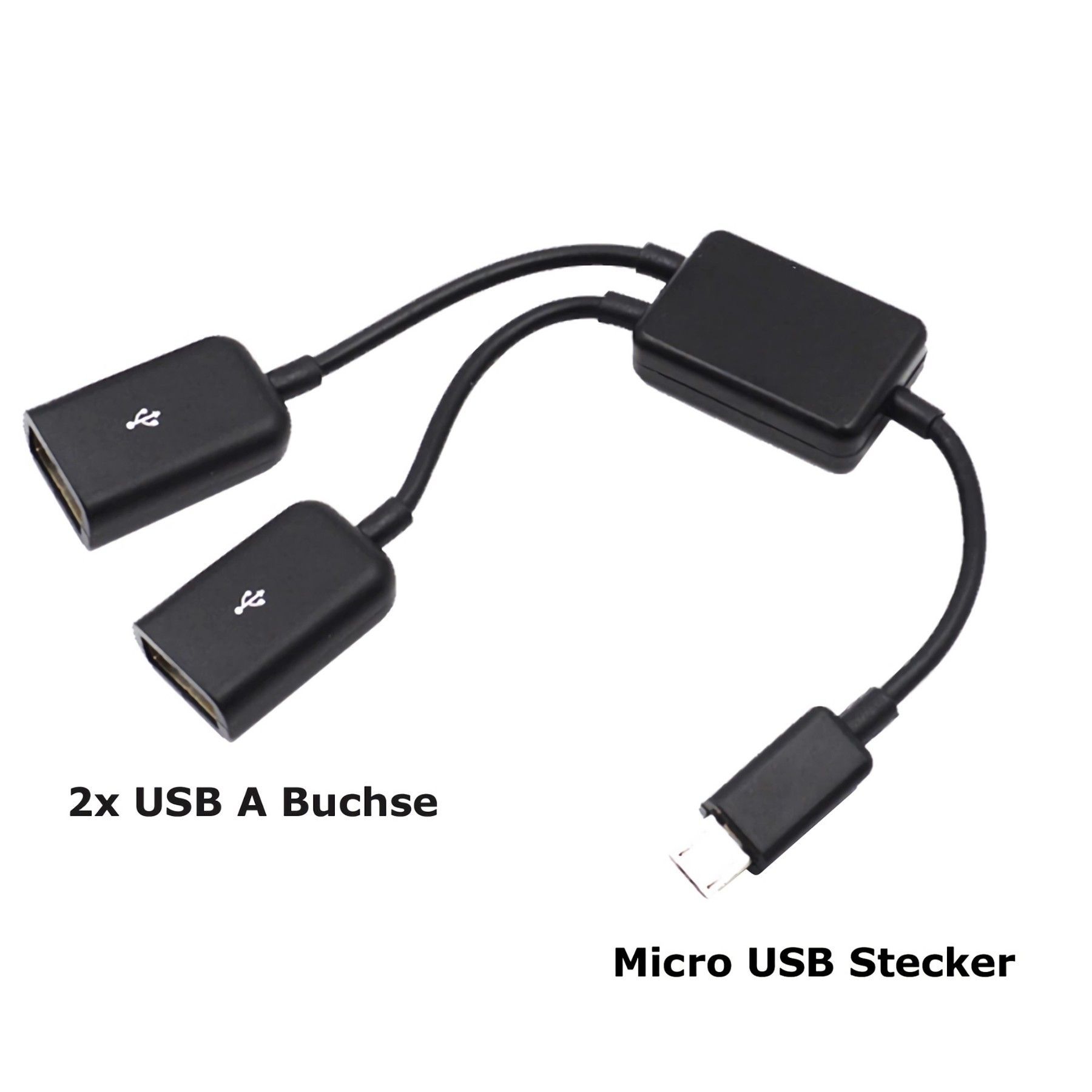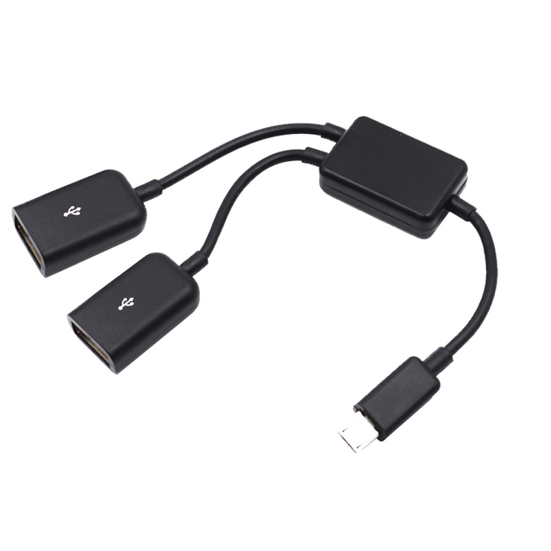 F64 micro USB auf 2x USB 2.0 A OTG Kabeladapter für USB Stick Maus Tastatur 19cm