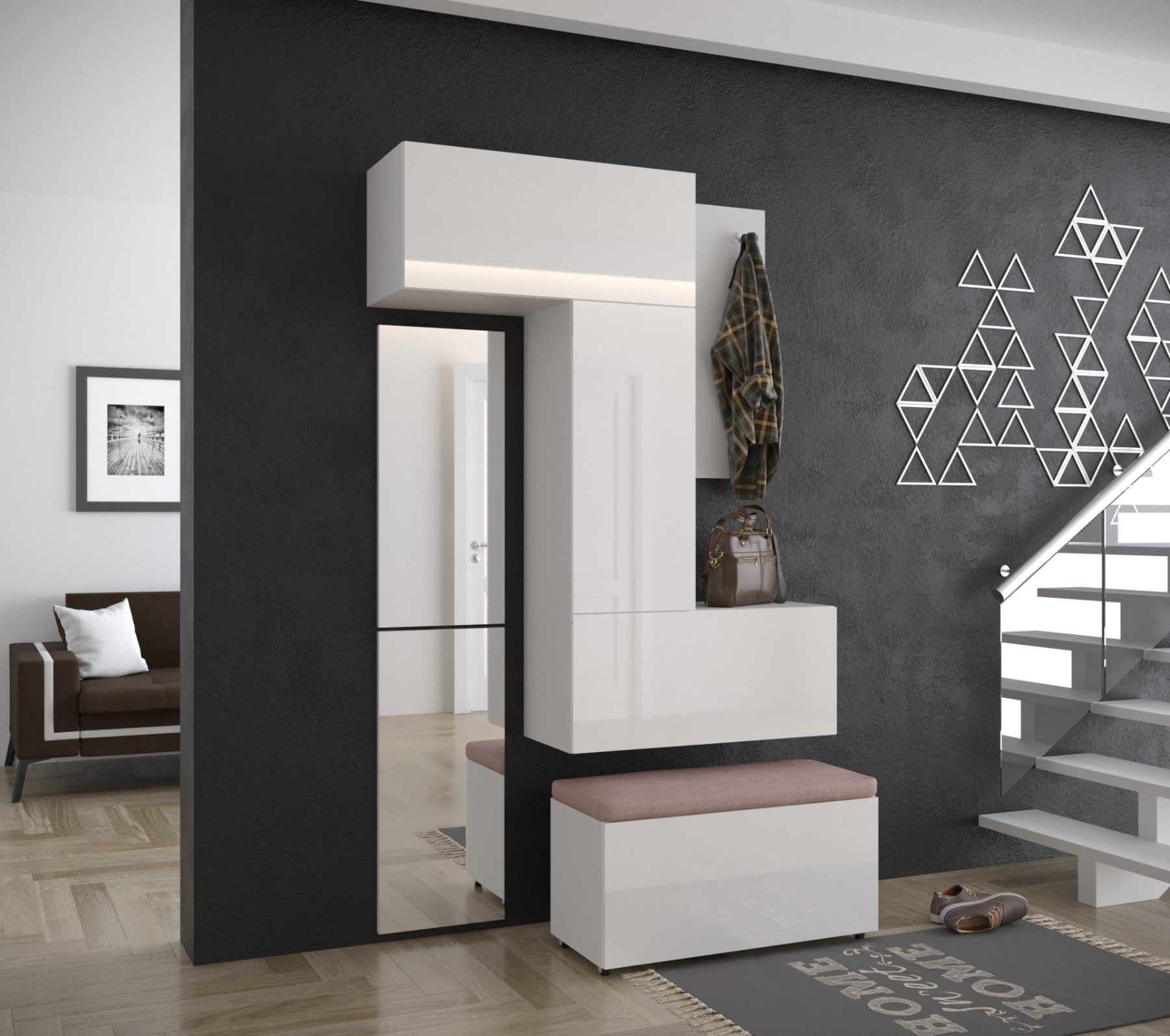 F8 Flur Dielenmöbel Garderobenschrank Dielenschrank Schuhschrank Flurmöbel Spiegel