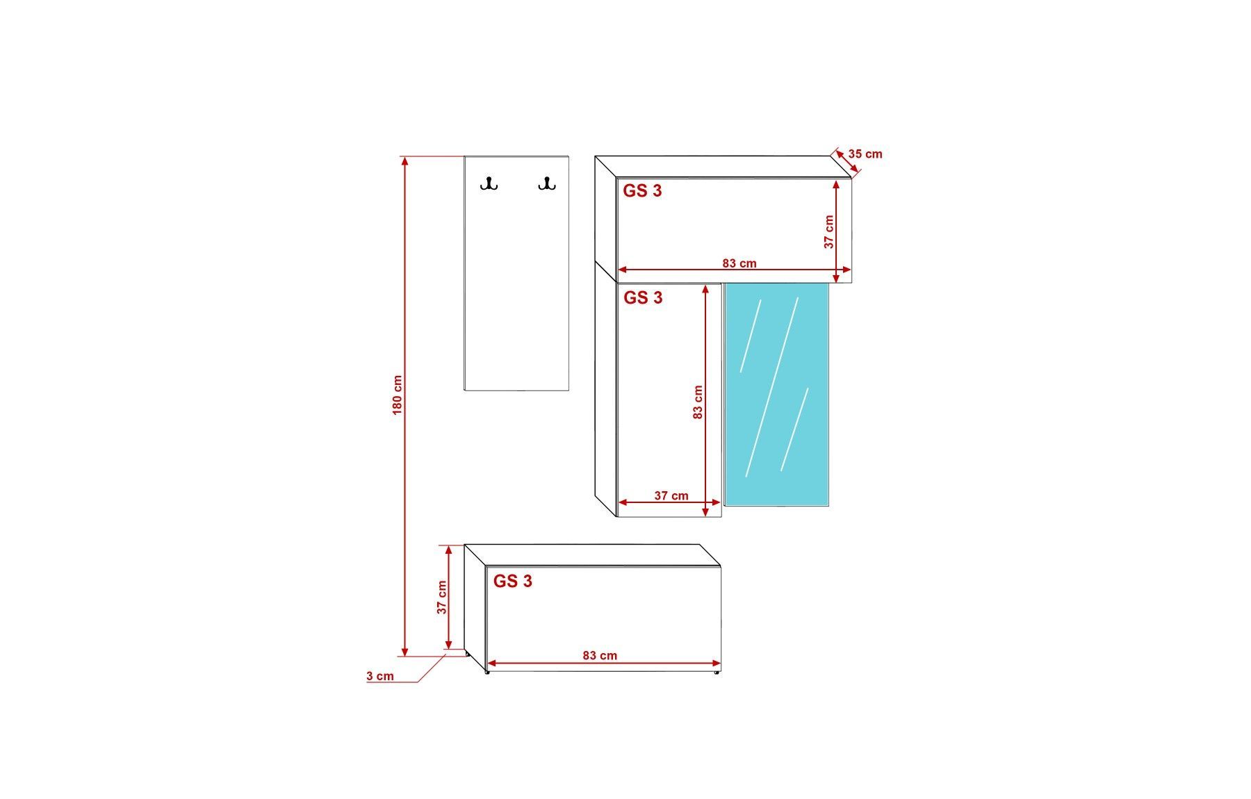 F9 Flur Dielenmöbel Garderobenschrank Dielenschrank Schuhschrank Flurmöbel Spiegel