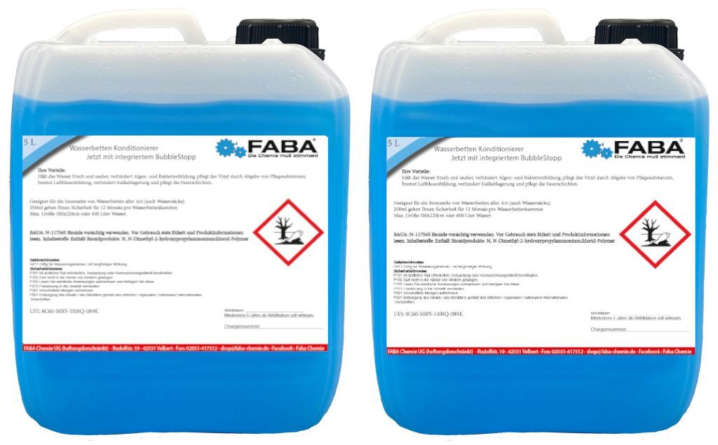 FABA Wasserbett Konditionierer mit Bubble Stopp, Wasserbett Conditioner 2 x 5 L