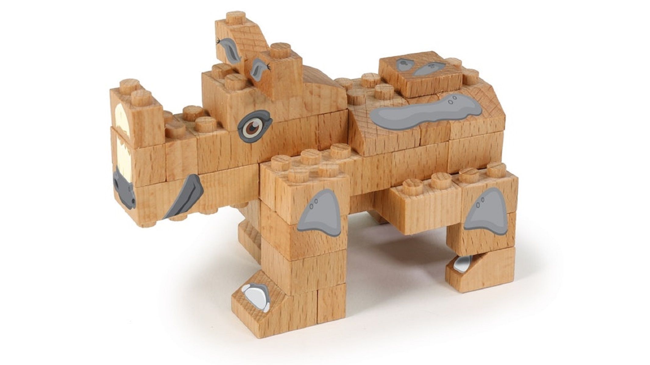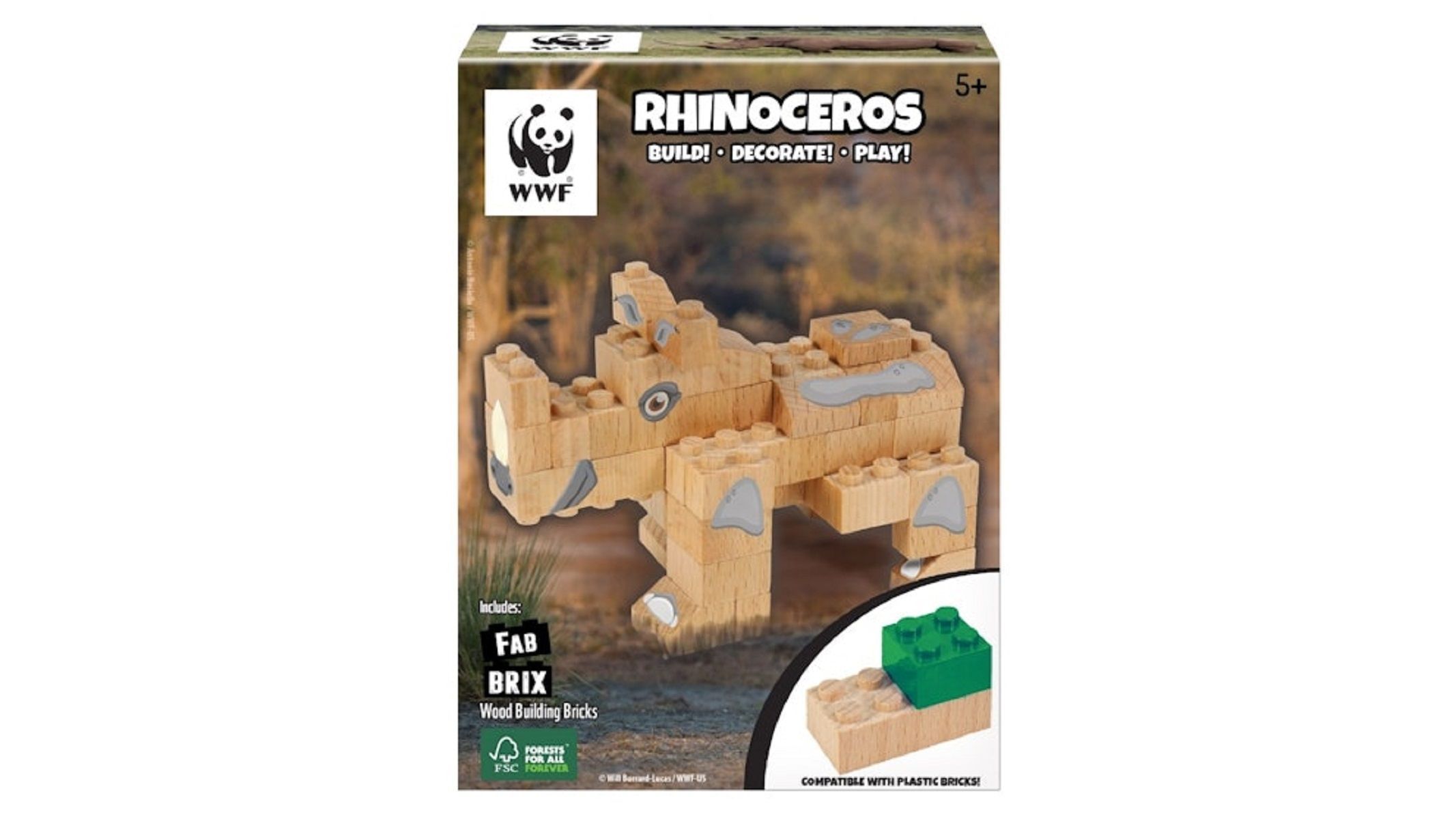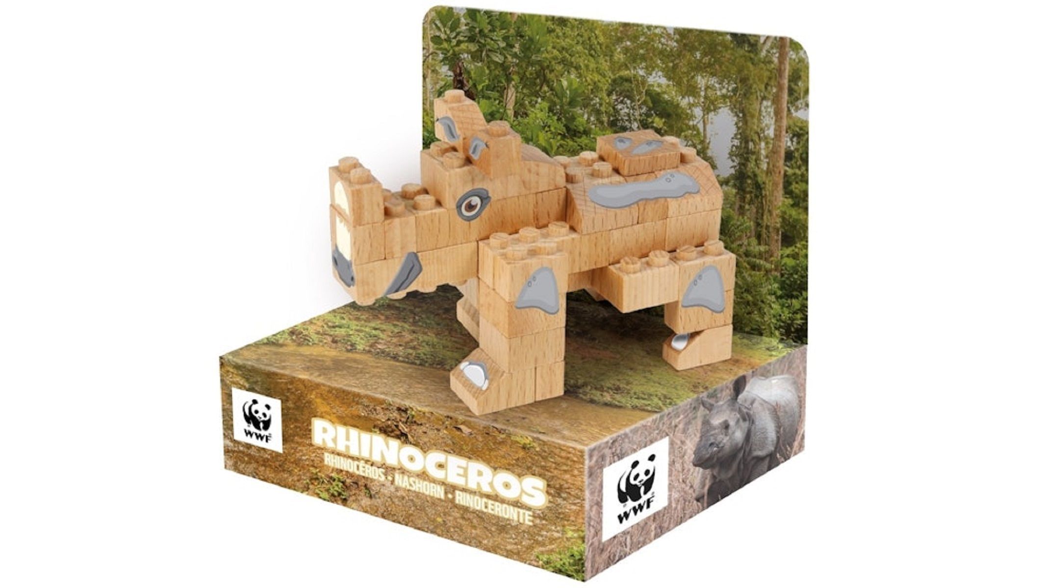FabBrix WWF Wooden Bricks Rhino Holzbausteine, Klemmbausteine aus zertifiziertem