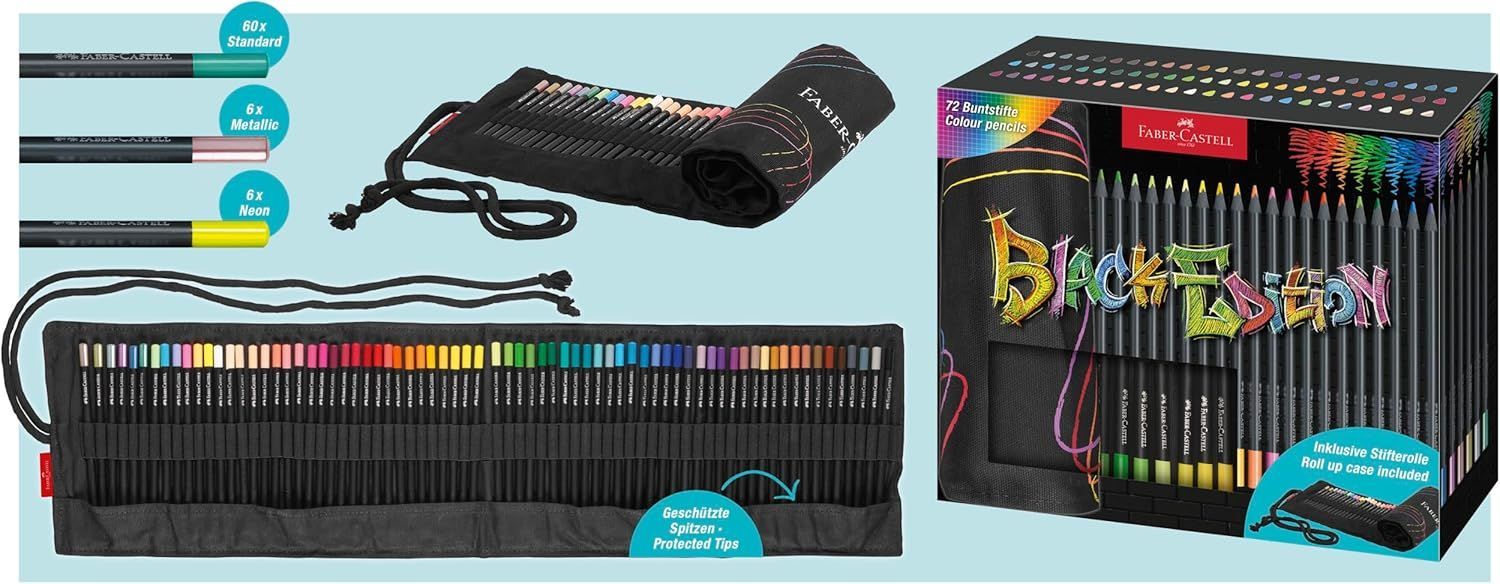 Faber-Castell FABER-CASTELL 116418 - Buntstifte Set mit Stifte Rolle, 72 Black Edition Buntstifte