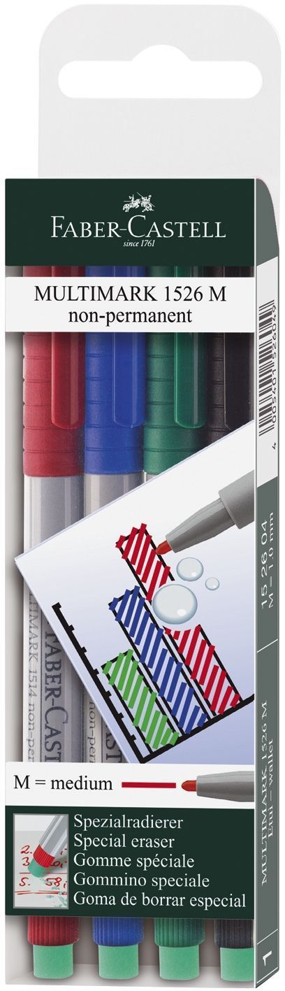 Faber-Castell Faber-Castell 152604 CD-Marker Multimark - non-permanent, M, 4 Farben Etui