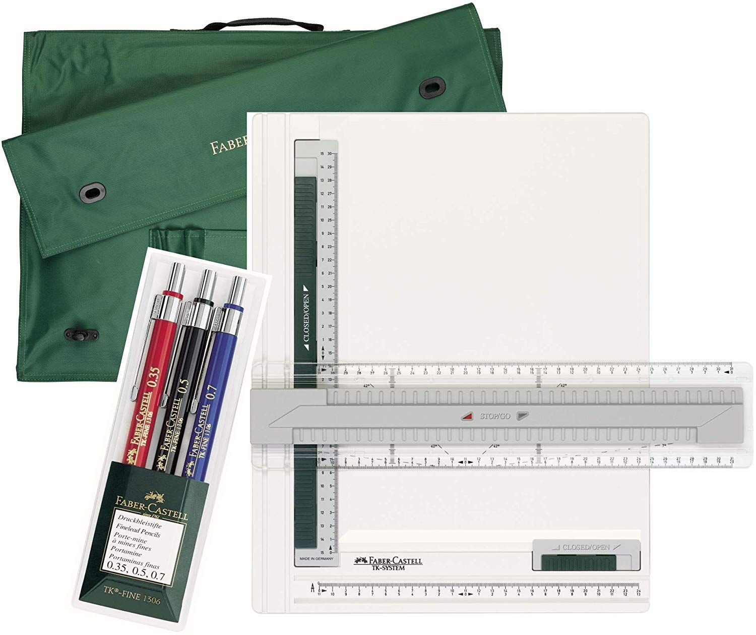 Faber-Castell Set: A4 Zeichenplatte, A4 Tragetasche, 3er Druckbleistifte Set