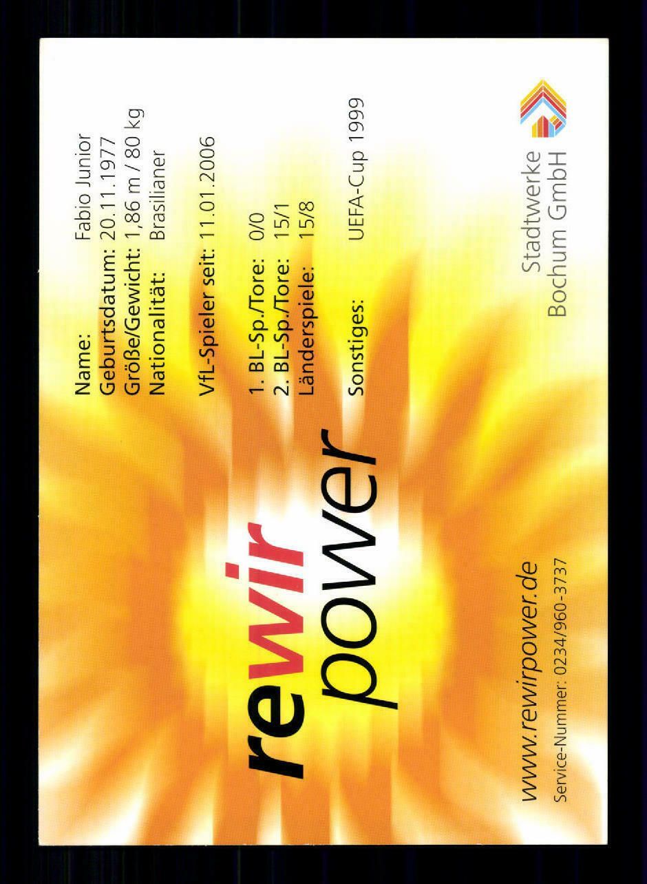 Fabio Junior Autogrammkarte VFL Bochum 2006-07 Original Signiert