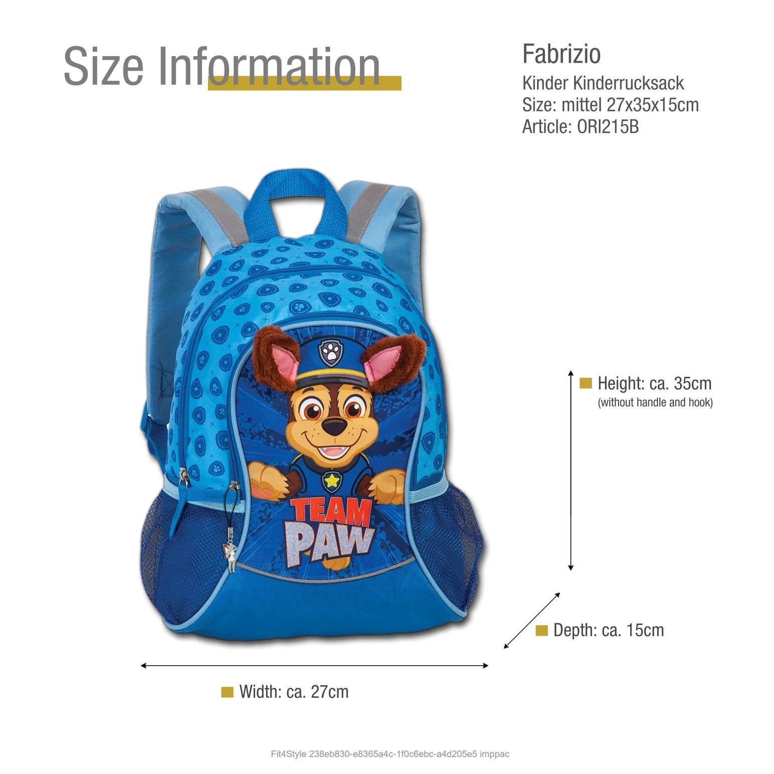 Fabrizio Kinder Rucksack 27x35x14 blau Paw Patrol Chase Freizeitrucksack ORI215B