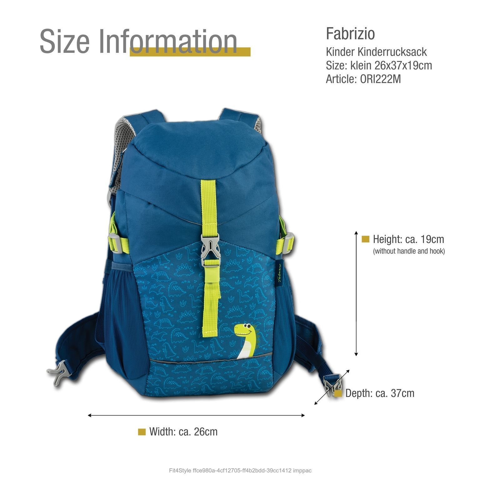 Hier ist ein wunderschöner Fabrizio Marken-Kinderrucksack für Kinder in der Farbe blau. Dieser trendige Rucksack ist aus Polyester recycelt und wird mit Klippverschluss Ziehschleife verschlossen.