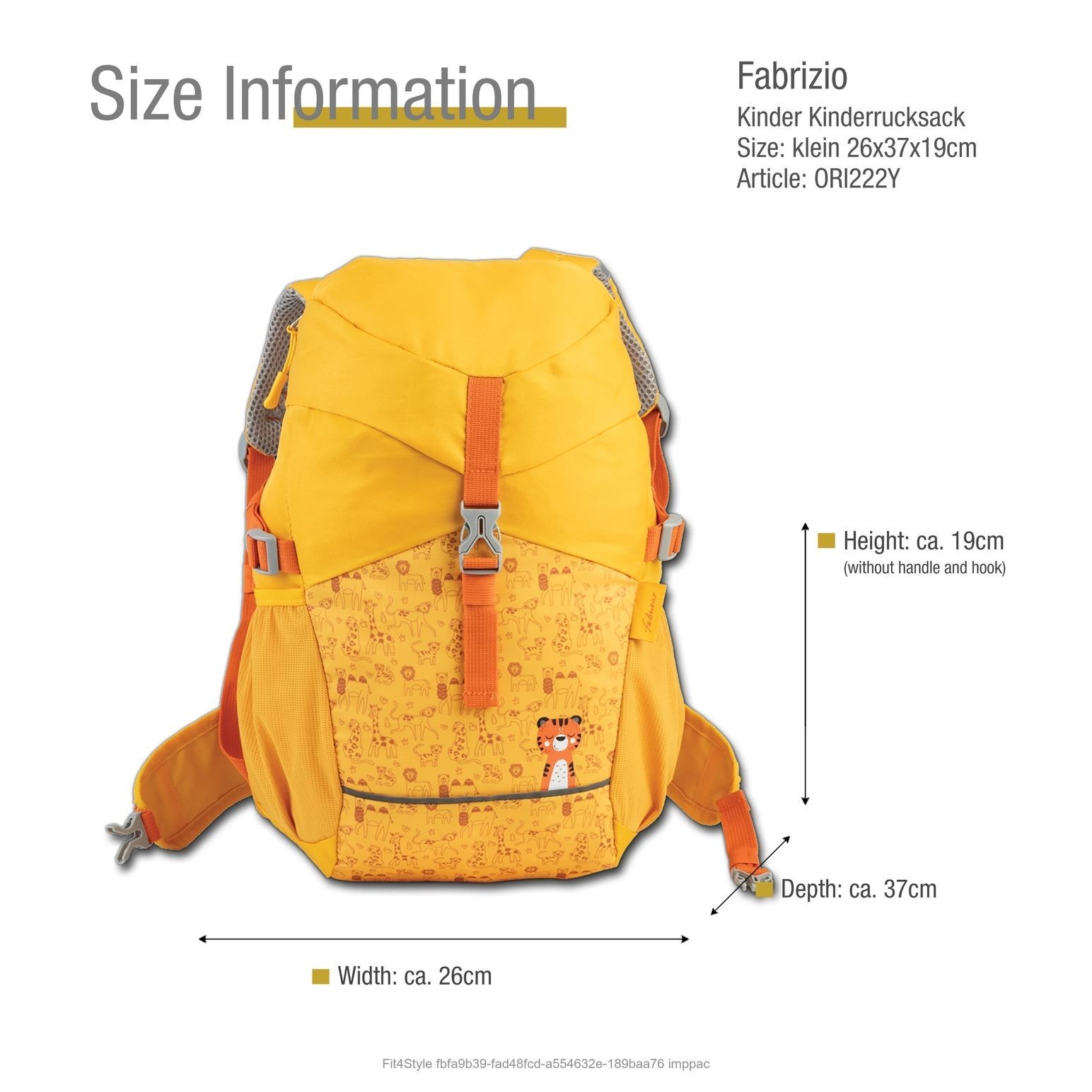 Hier ist ein wunderschöner Fabrizio Marken-Kinderrucksack für Kinder in der Farbe gelb. Dieser trendige Rucksack ist aus Polyester recycelt und wird mit Klippverschluss Ziehschleife verschlossen.