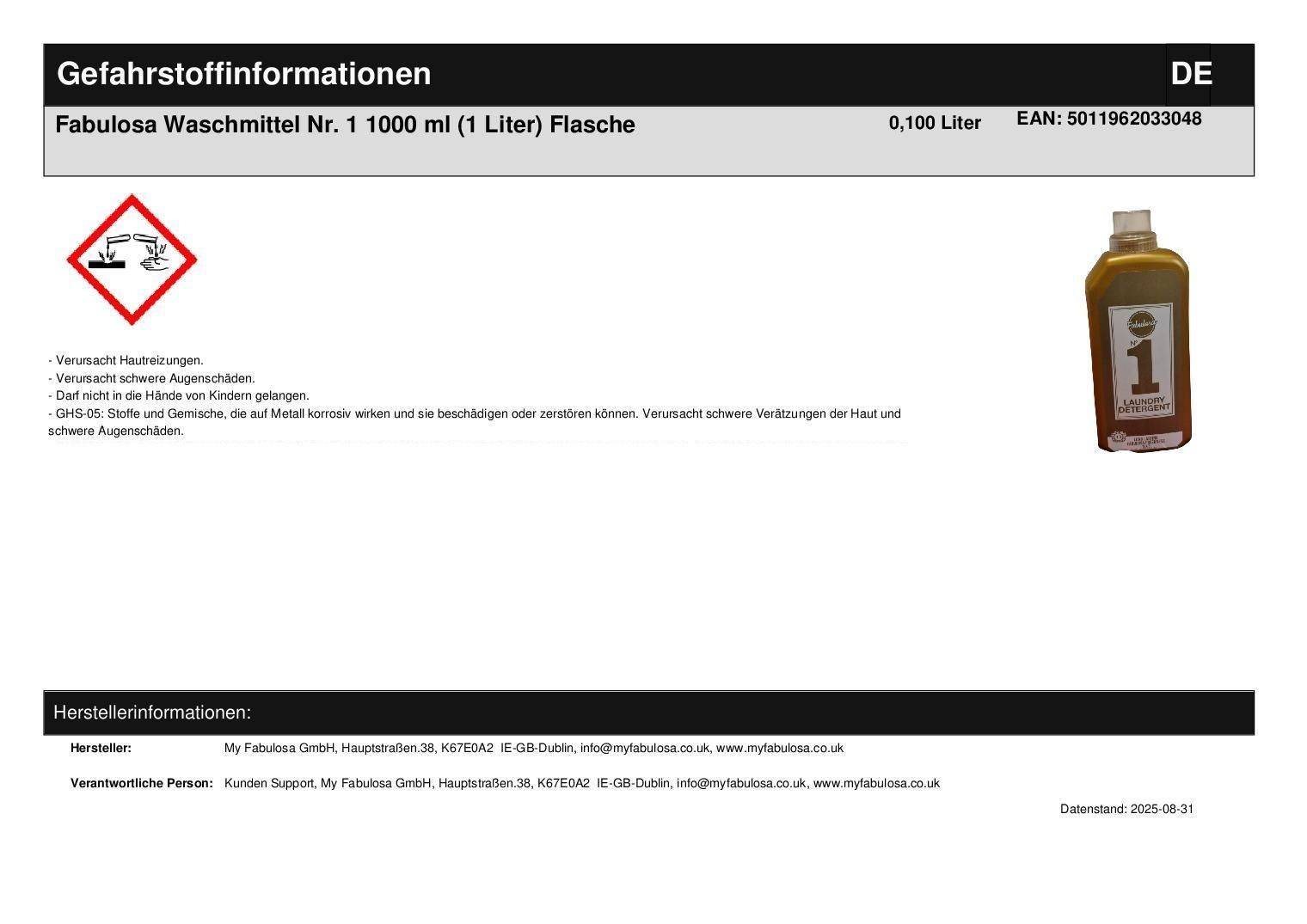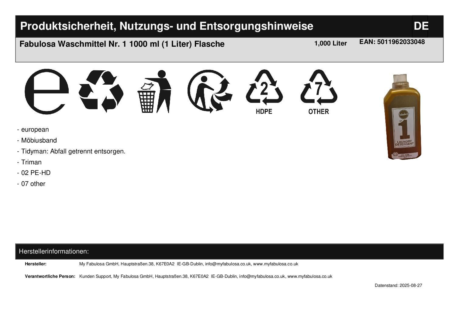 Fabulosa Waschmittel Nr. 1 1000 ml (1 Liter) Flasche