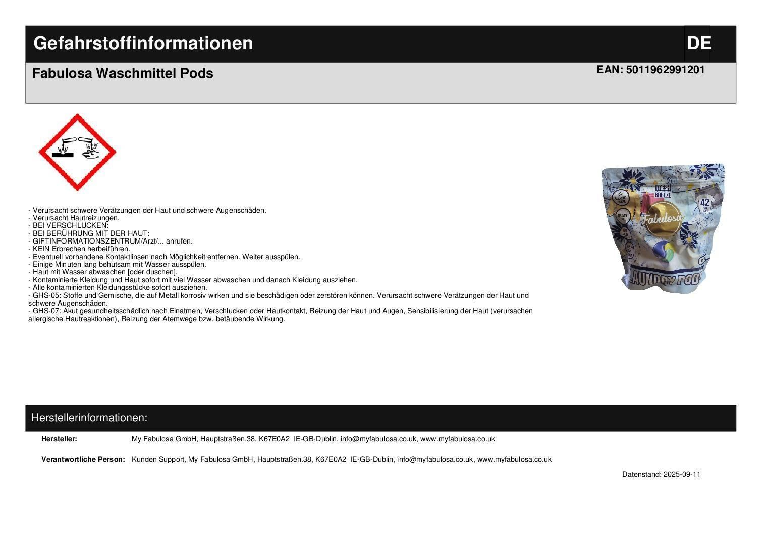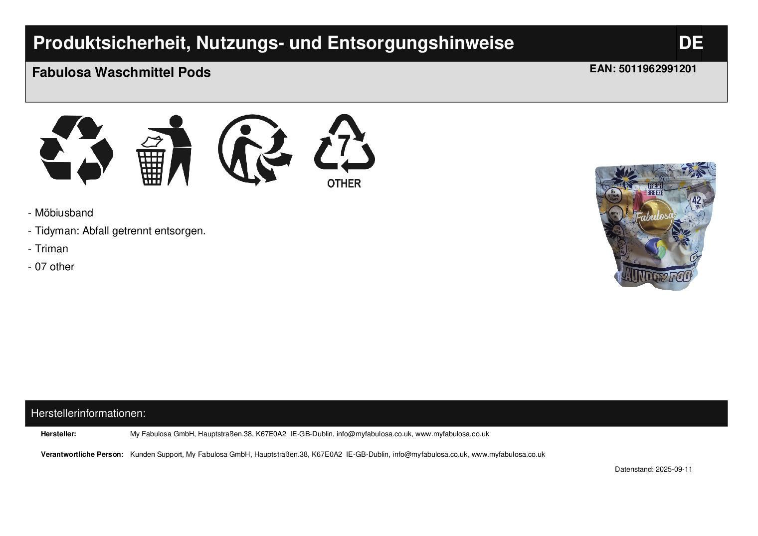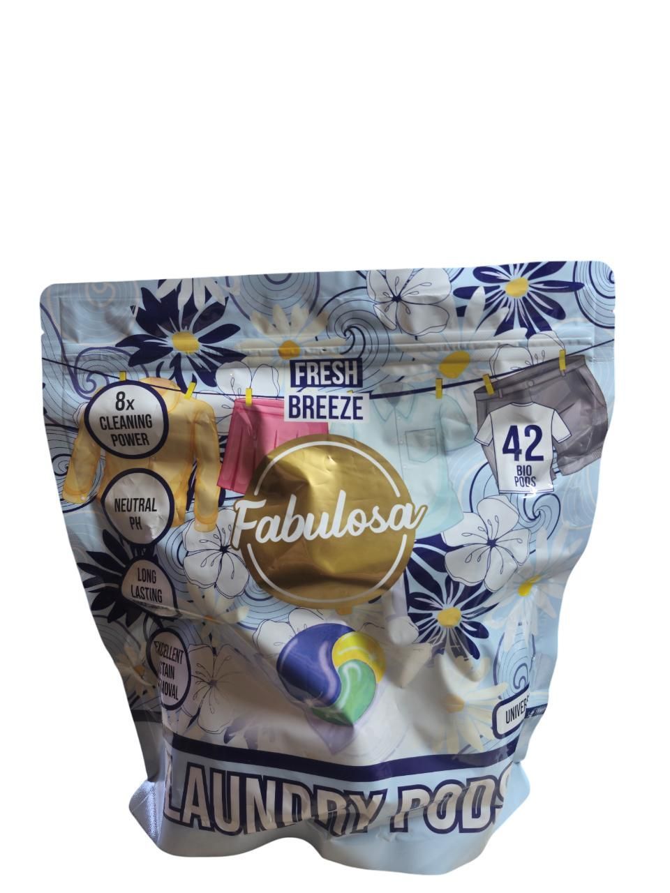 Fabulosa Laundry Pods Fresh Breeze (42 Pods) Erleben Sie eine kraftvolle und langanhaltende Frische mit den Fabulosa Laundry Pods Fresh Breeze von TW Industries. Diese biologisch abbaubaren Waschkapseln kombinieren effiziente Reinigung mit einem angenehmen, frischen Duft und sind ideal für den täglichen Gebrauch. Produktmerkmale: 8x Reinigungsleistung ? Für eine besonders gründliche Sauberkeit, selbst bei hartnäckigen Flecken. Neutraler pH-Wert ? Schonend zu Textilien und Haut.