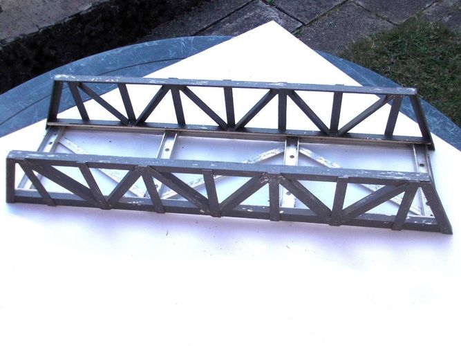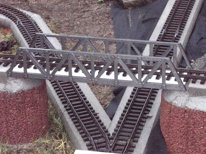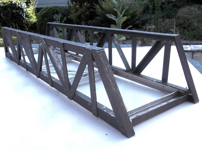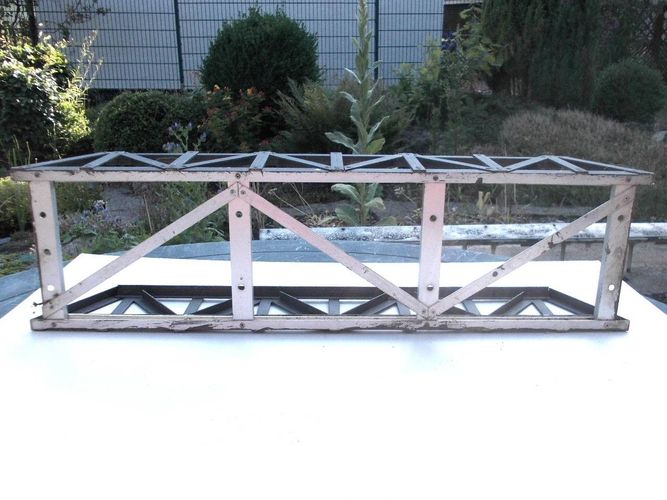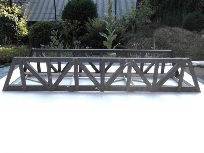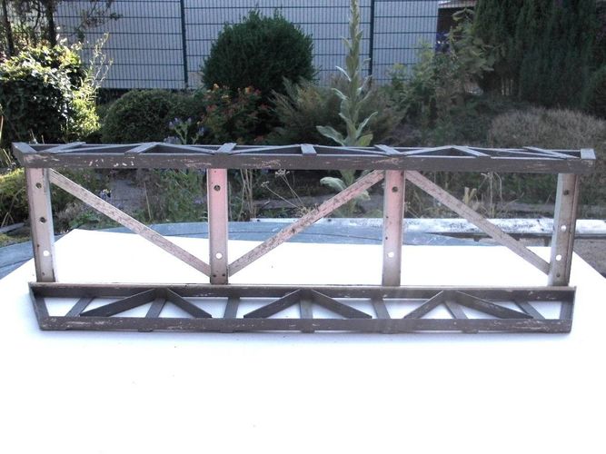 Die Bezahlung ist nur mit PayPal oder Barzahlung bei Abholung möglich, keine Banküberweisung !!! Eigenbau Maßstab 1:22,5 Spur G neuwertiges Modell: Fachwerkbrücke, eingleisig Aus Aluminium- Profilen genietet, dadurch rostfrei, lackiert. Durch mehrjährigen Außeneinsatz auf der Anlage braucht sie eine