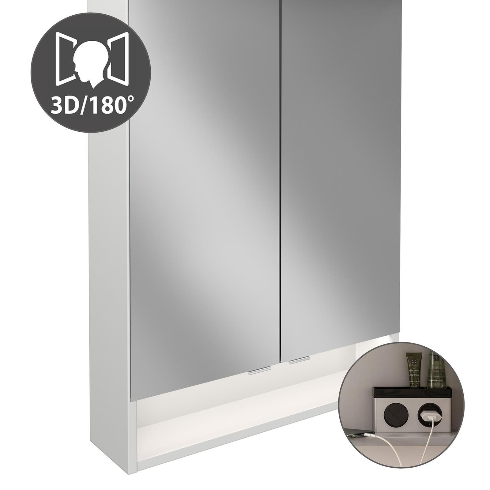 Fackelmann Fackelmann 2-türiger LED Bad Spiegelschrank 60 cm weiß mit Paneel Beleuchtung