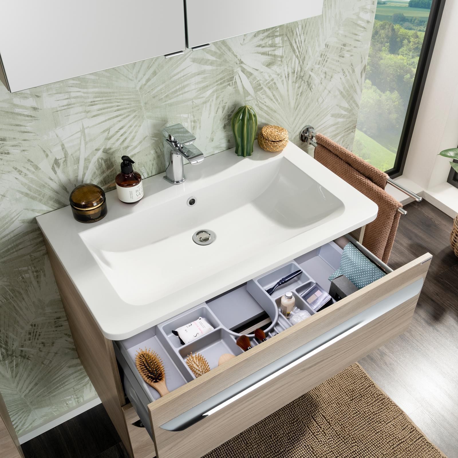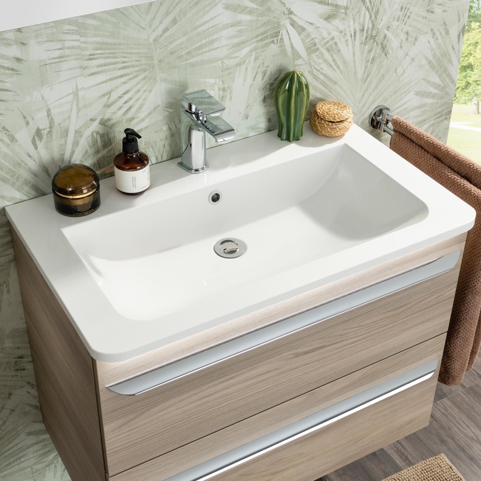 Fackelmann Fackelmann 79800 Waschbecken Mulde mittig Gussmarmor 80 cm weiß