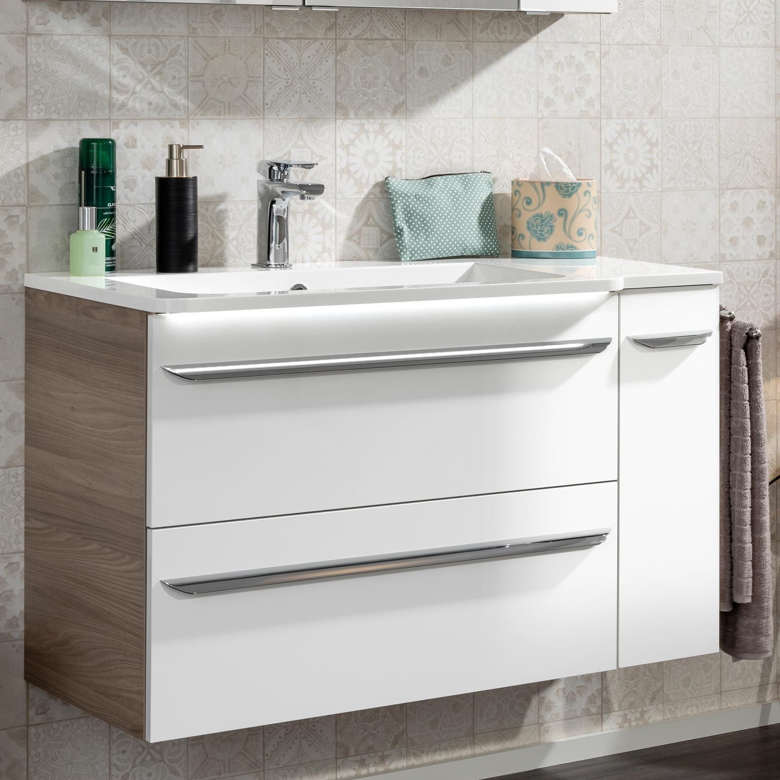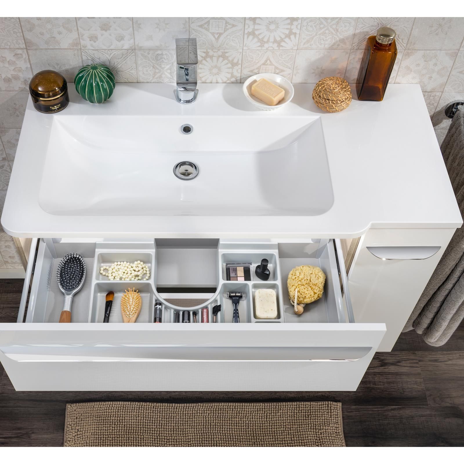 Fackelmann Fackelmann 79806 Waschbecken Mulde links Gussmarmor 100 cm weiß