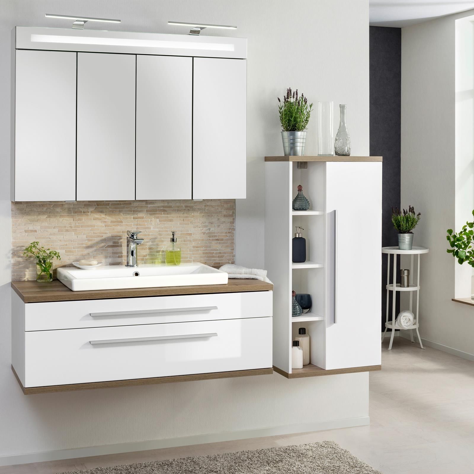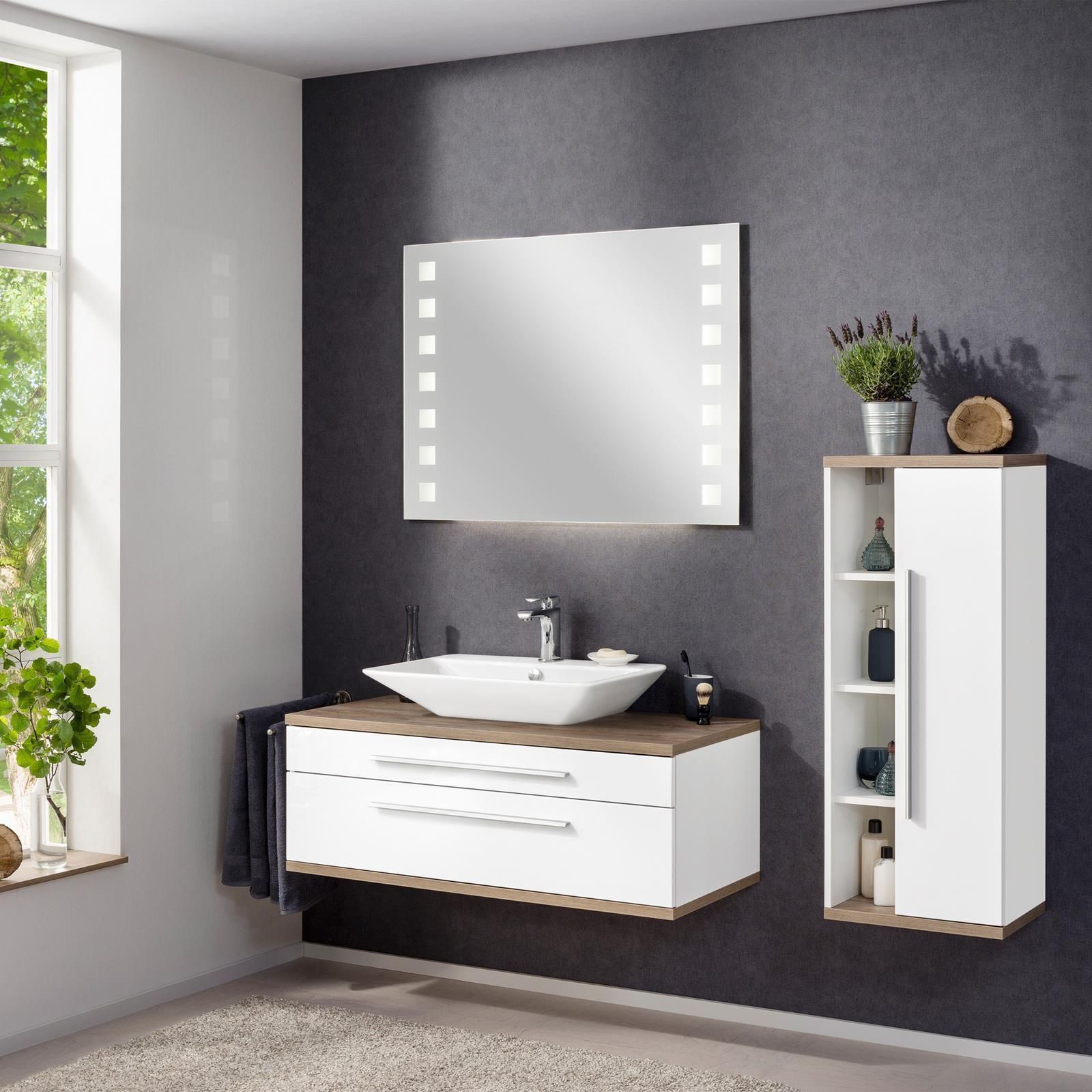 • Fackelmann 80053 Badschrank 50 cm weiß Glanz Midischrank Schrank breit Stanford