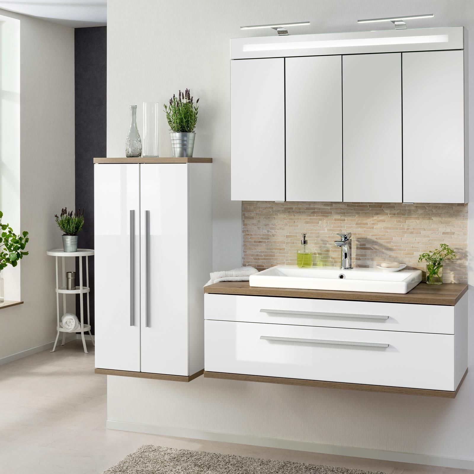 Fackelmann Fackelmann 80053 Badschrank 50 cm weiß Glanz Midischrank Schrank breit Stanford
