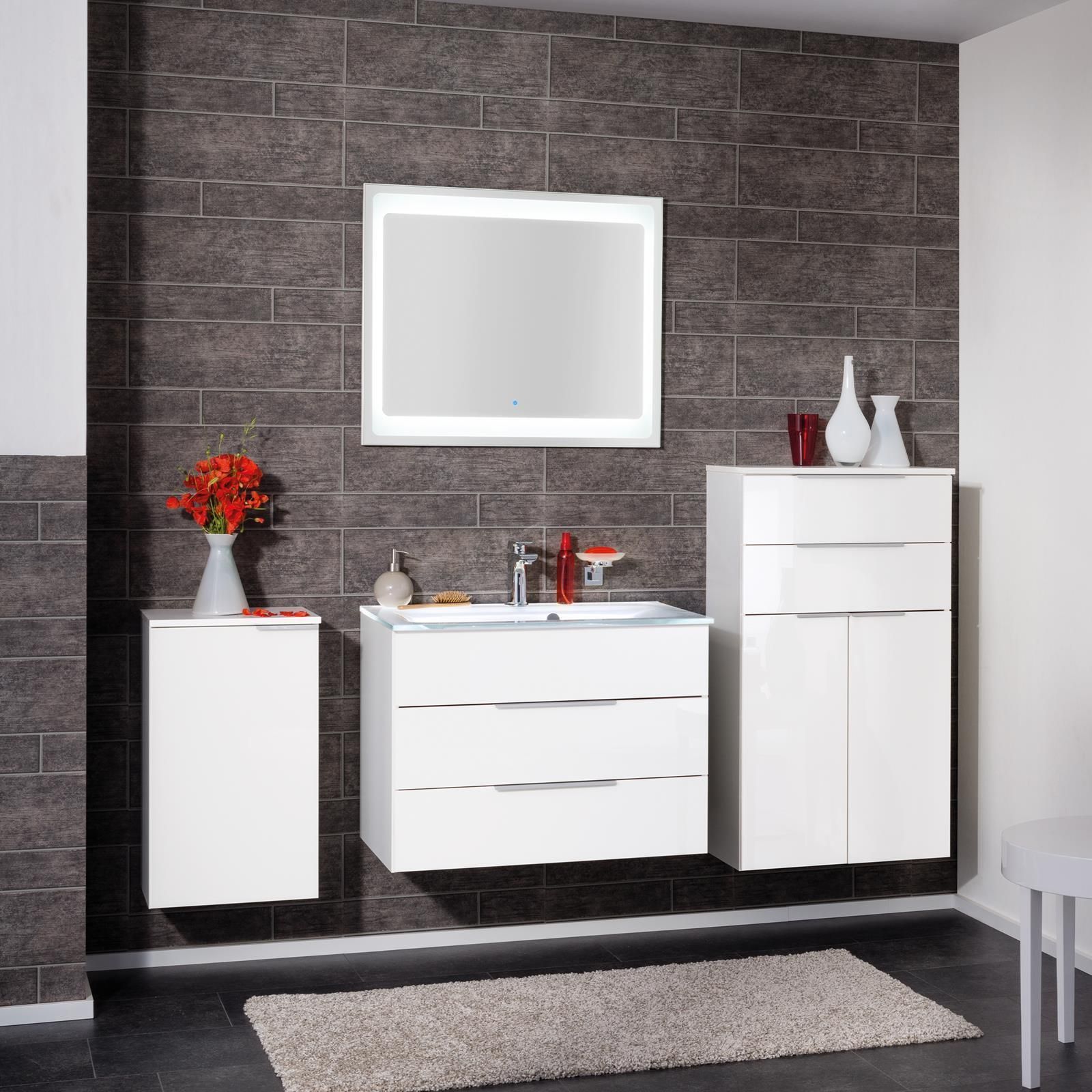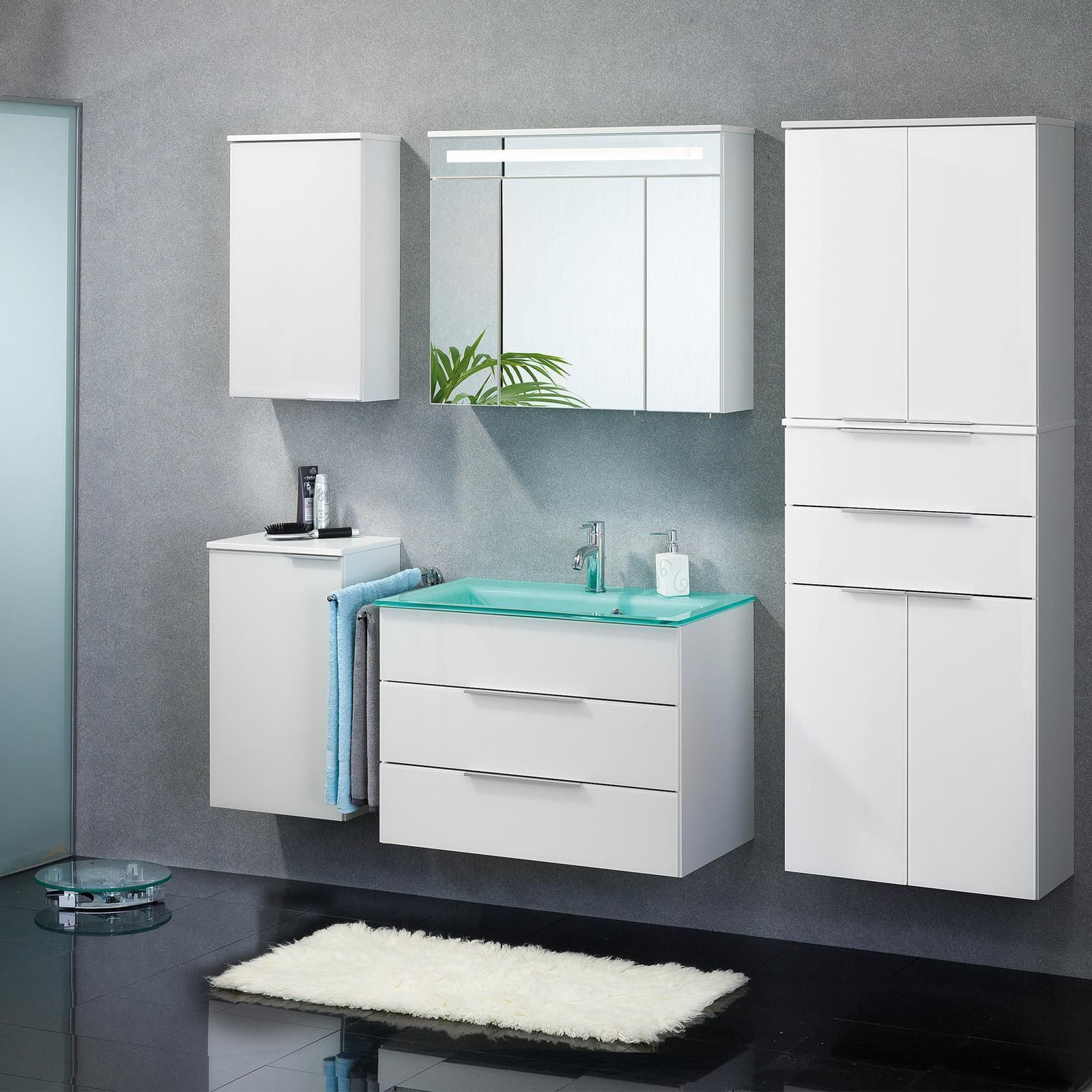 • Fackelmann 84723 Waschtisch Unterschrank hängend 80 cm weiß Hochglanz