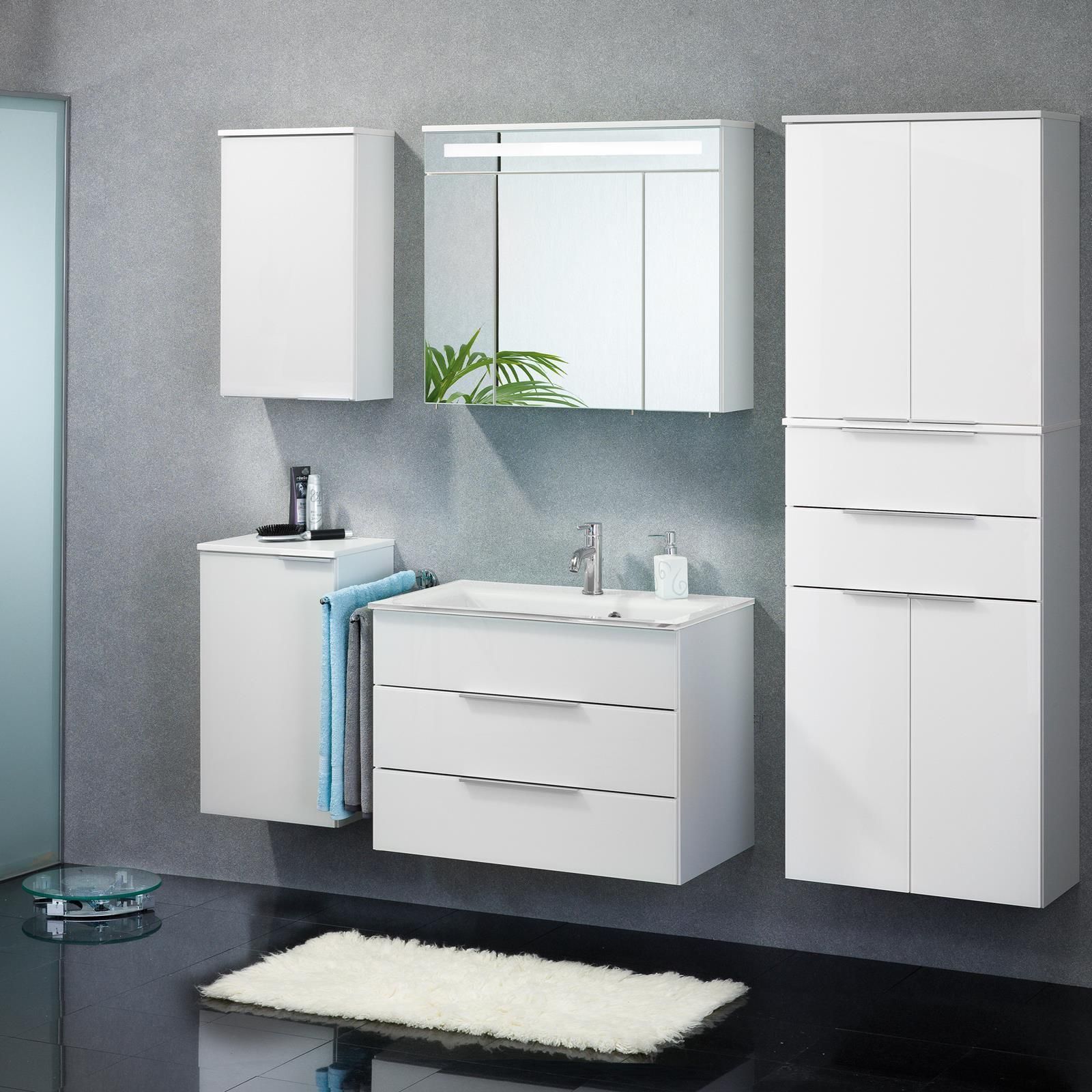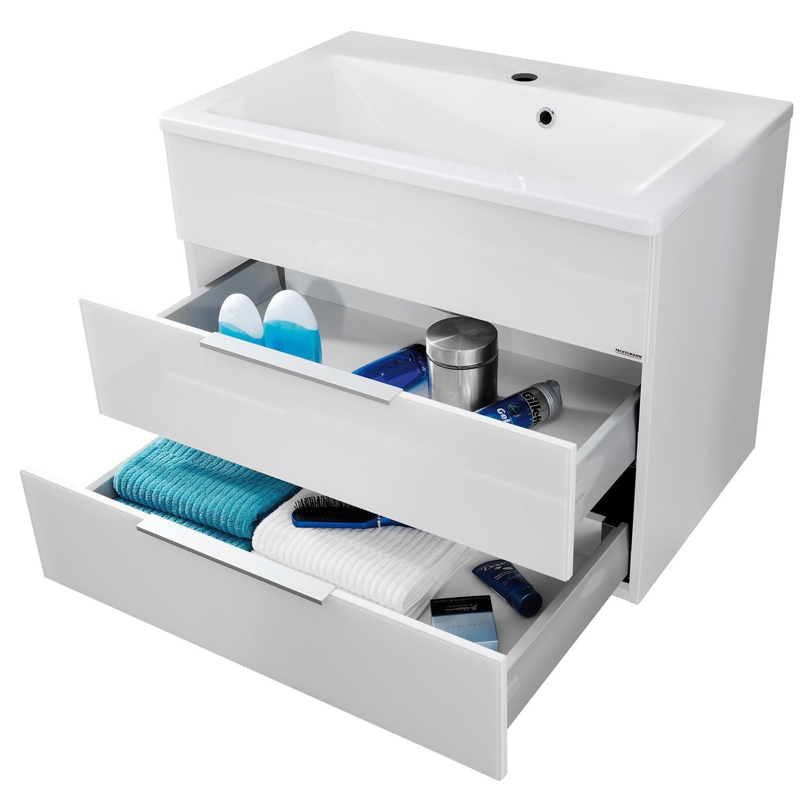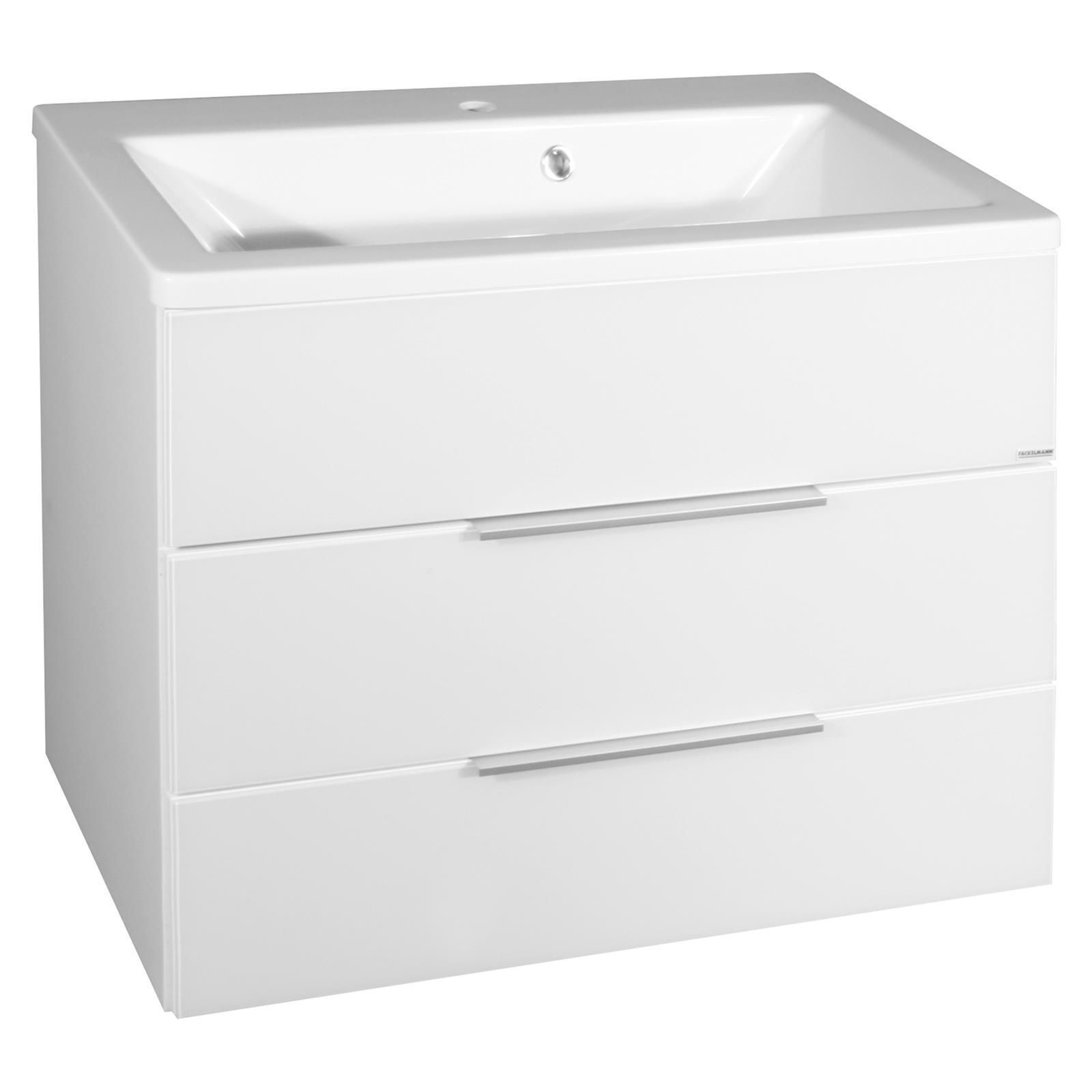 Fackelmann Waschbecken mit Unterschrank 80cm hängend weiß Gussmarmorbecken