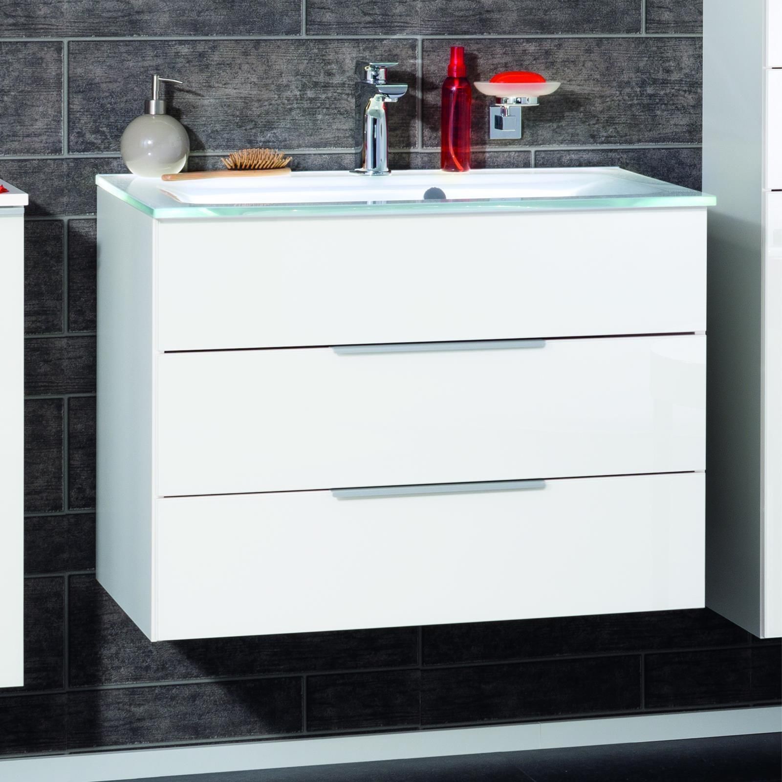 • Fackelmann 80934 Waschbecken Unterschrank Kara 80 cm weiß lackiertes Glas