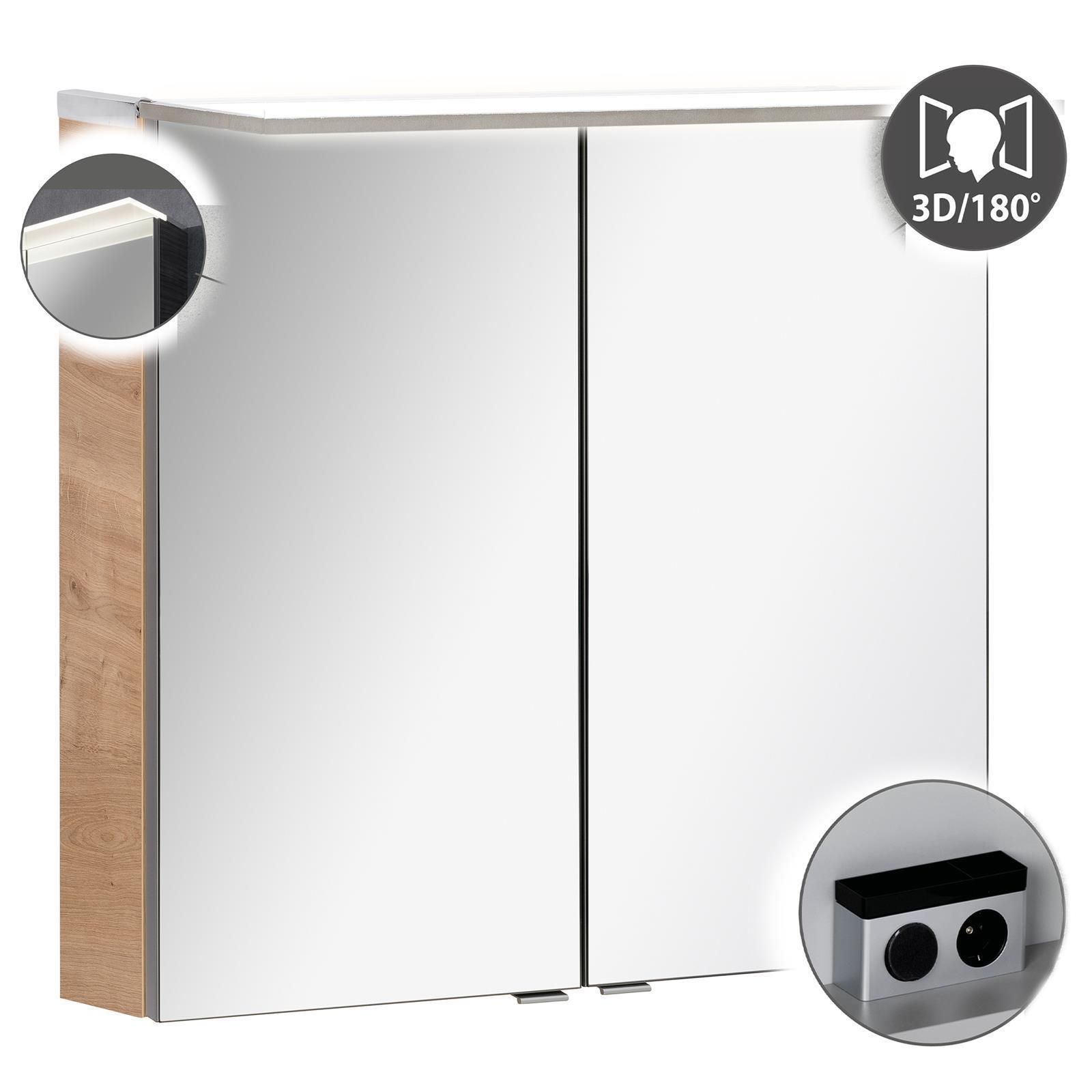 Fackelmann Fackelmann 84112 LED Spiegelschrank 80 cm eiche hell LED Badspiegel B. perfekt