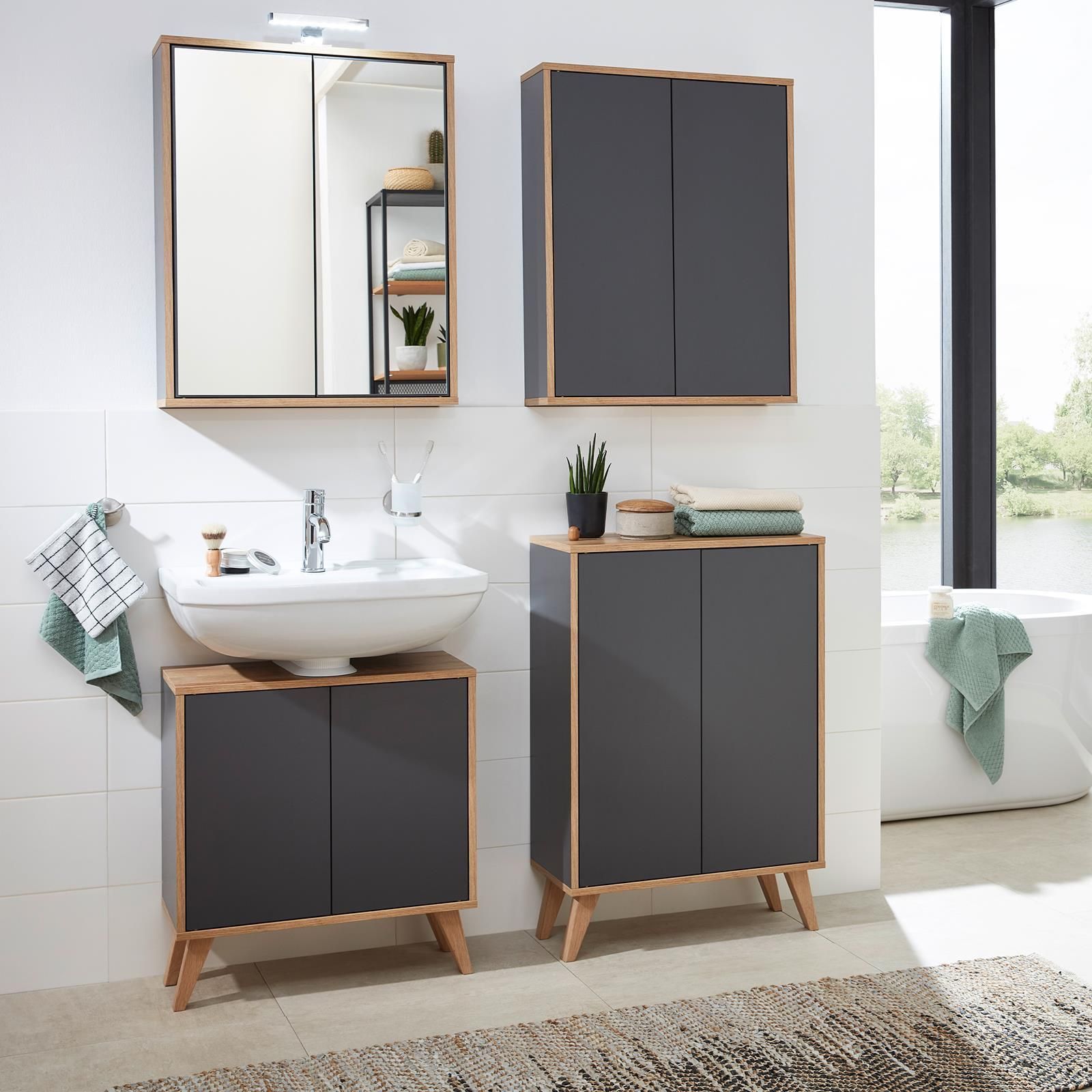 Fackelmann Fackelmann 84621 Doppel Hängeschrank hängend/stehend 60 cm anthrazit
