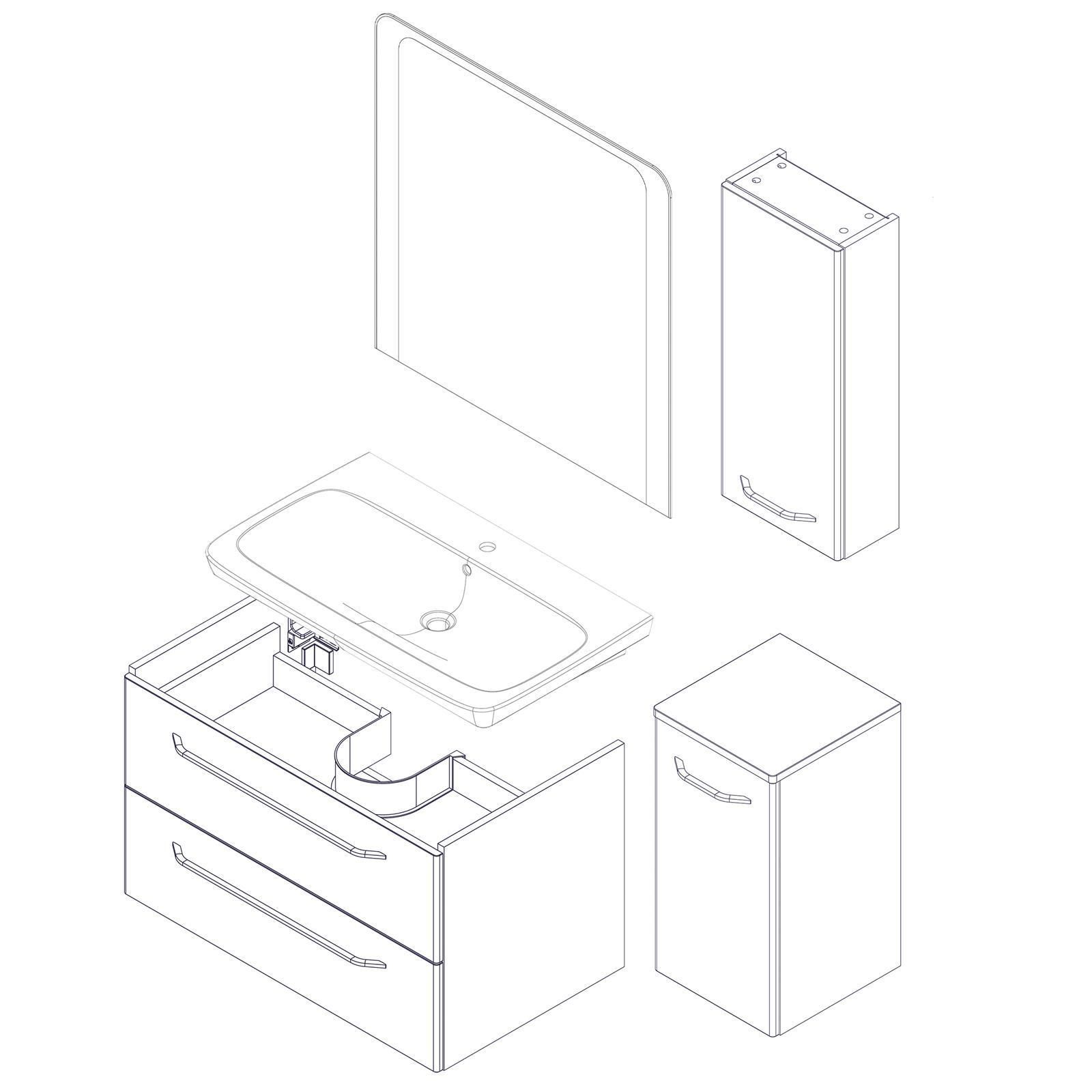 Fackelmann Fackelmann Badmöbel Hochglanz weiß Set hängend 5 teilig 80 cm