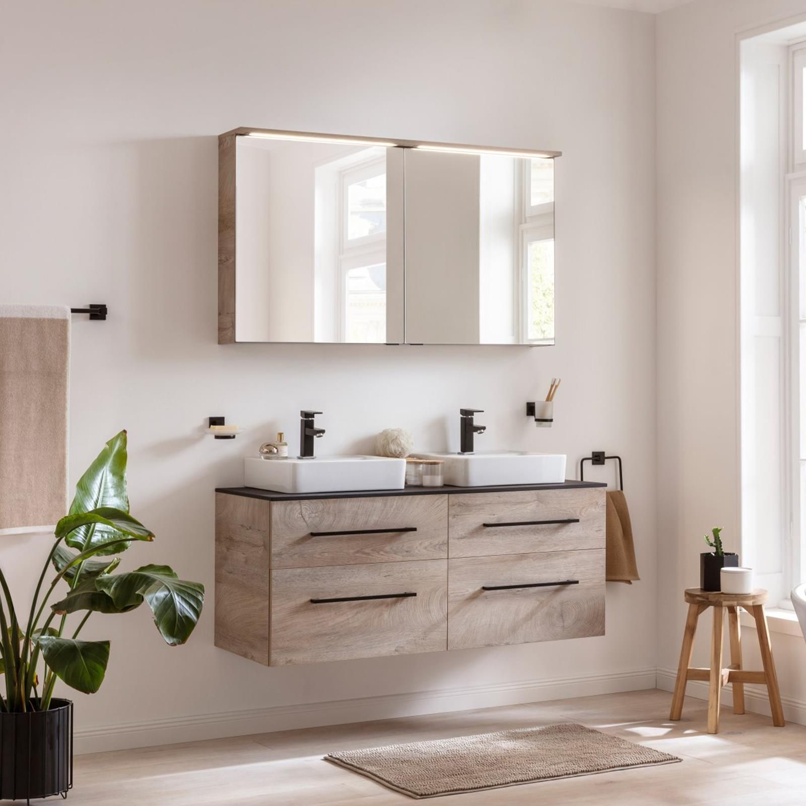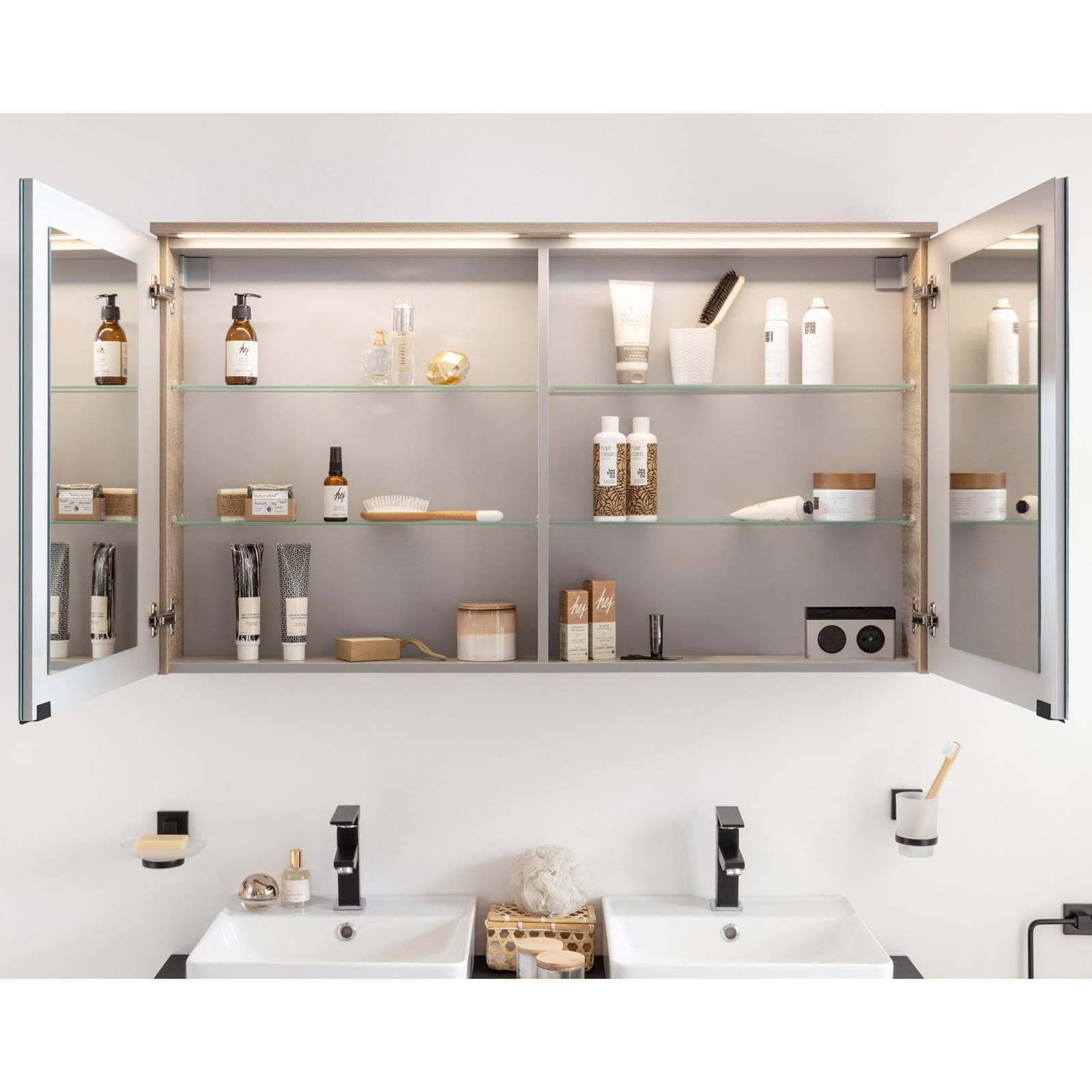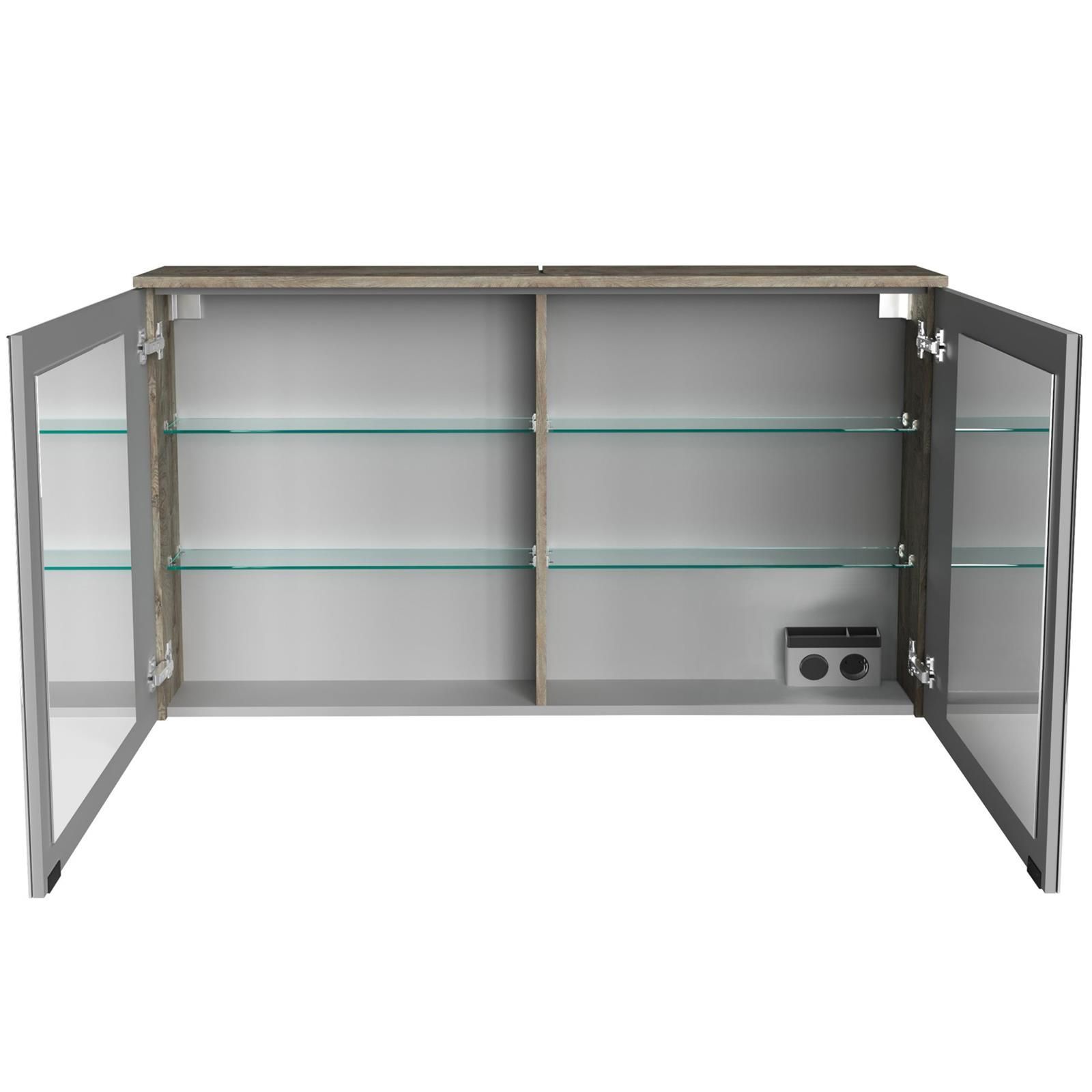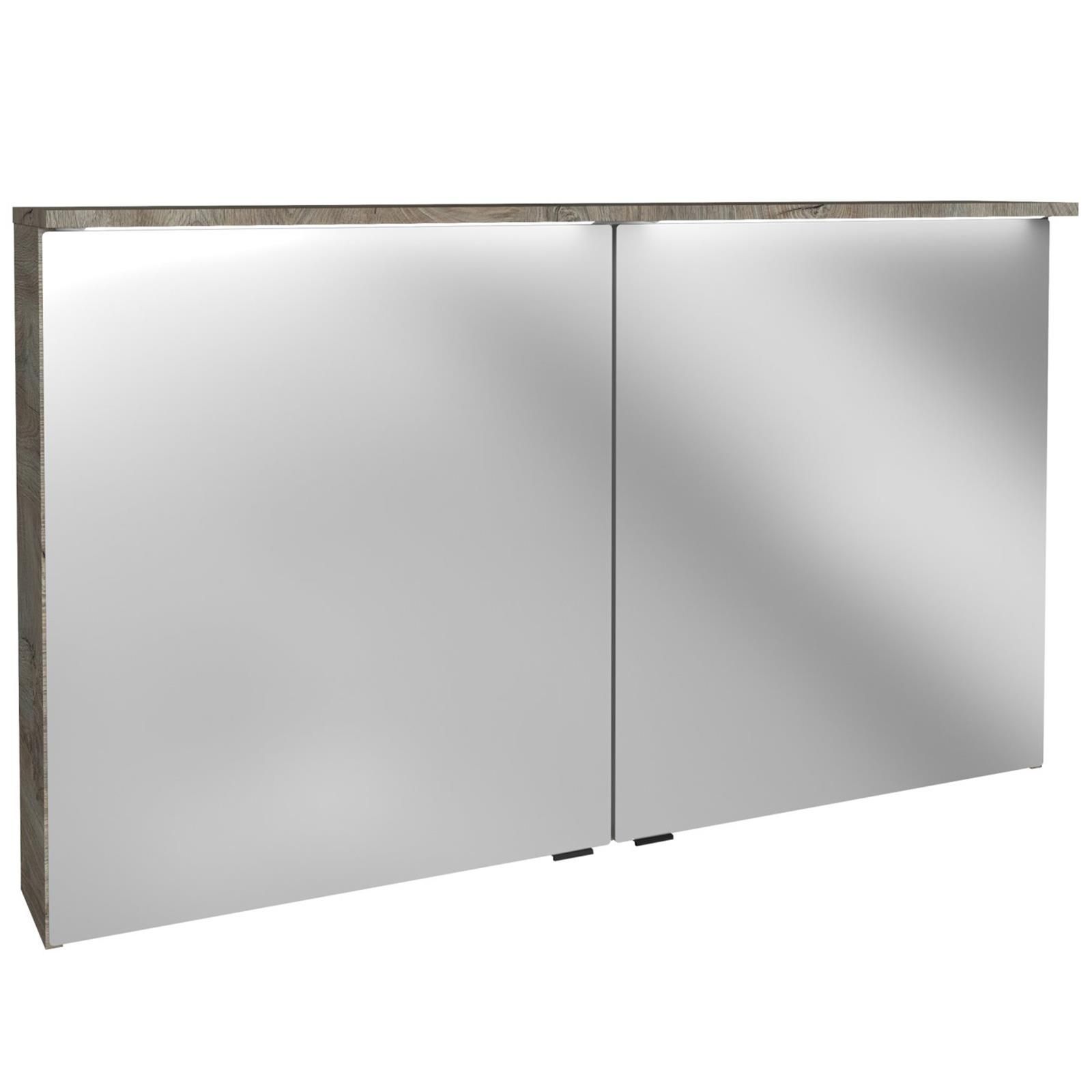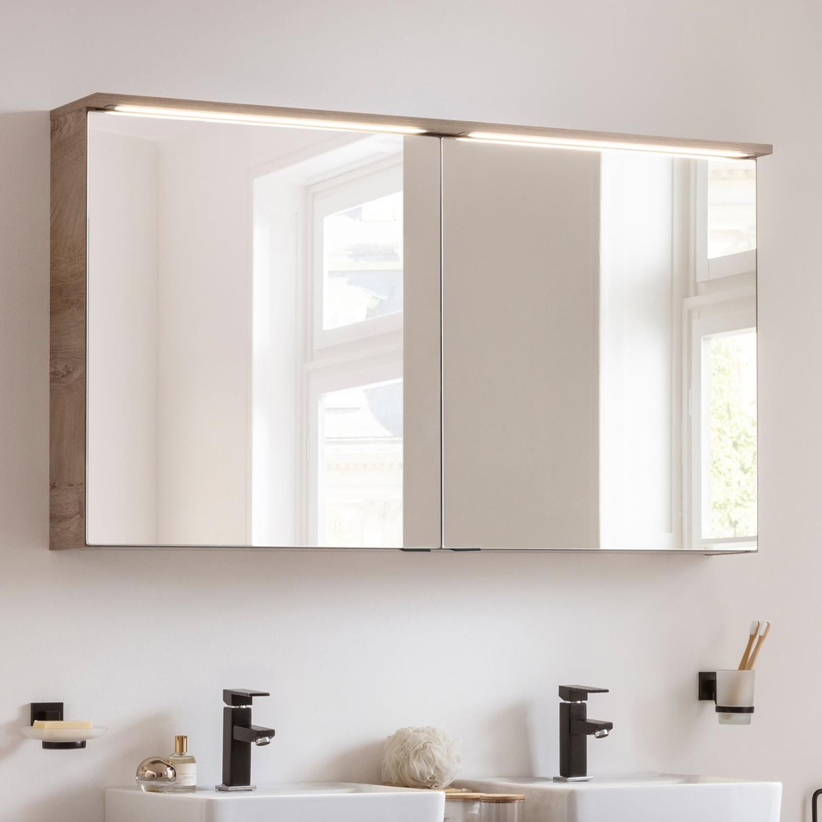 Fackelmann Fackelmann großer XL LED Spiegelschrank 120 cm 2-türig breit braun Leuchtpaneele