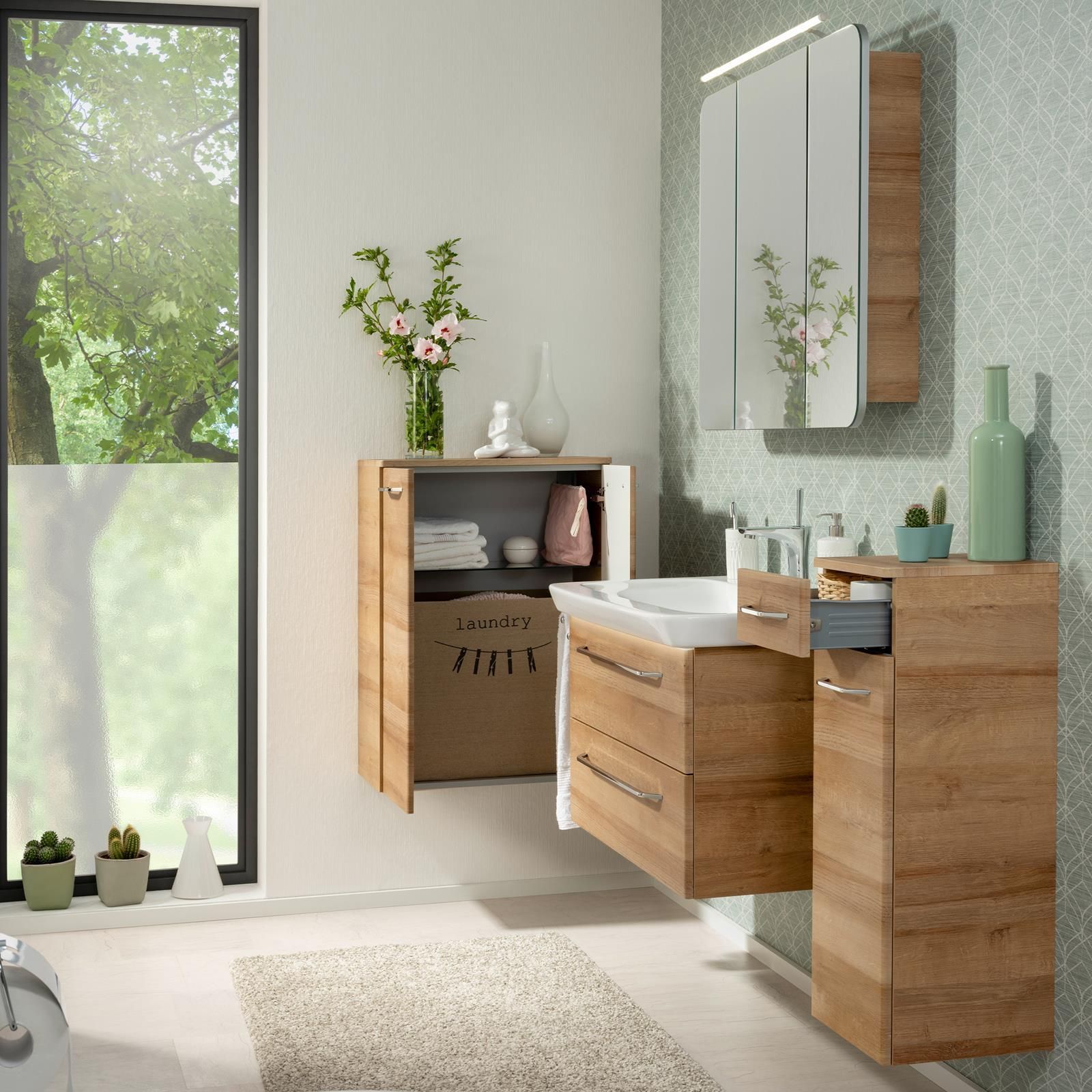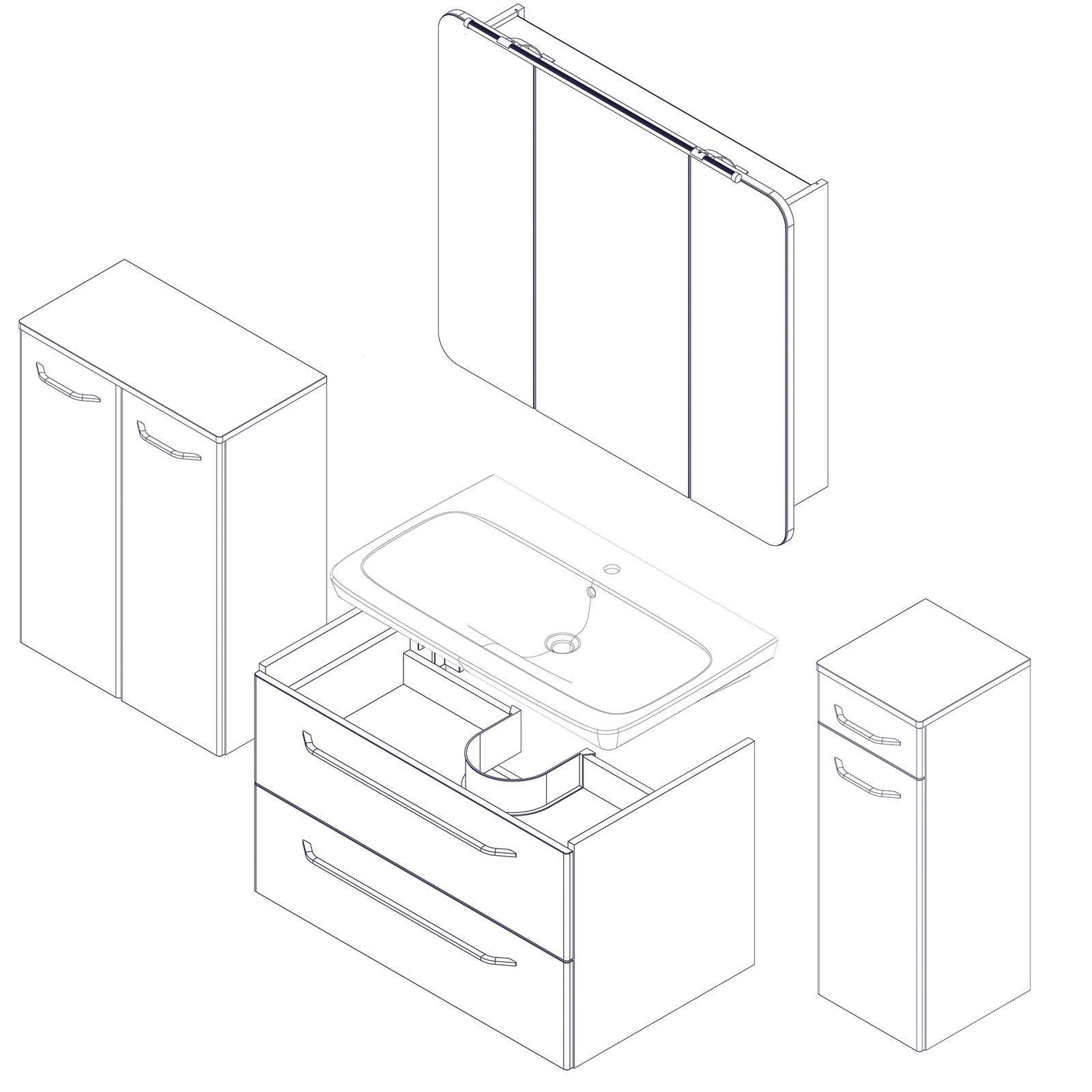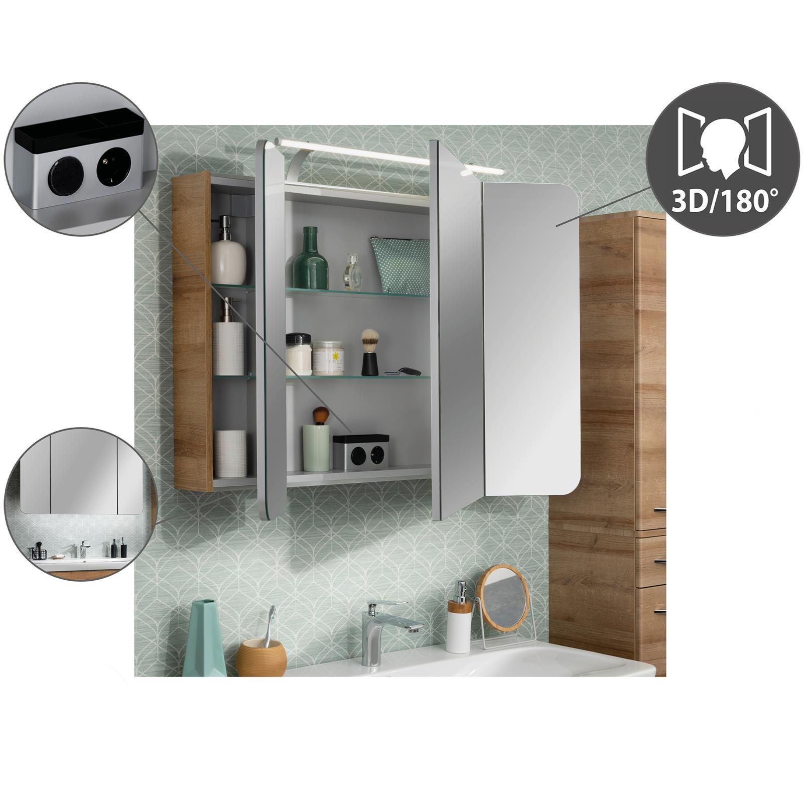 Fackelmann Fackelmann hängendes braunes Badmöbel Set 100 cm 5 teilig LED