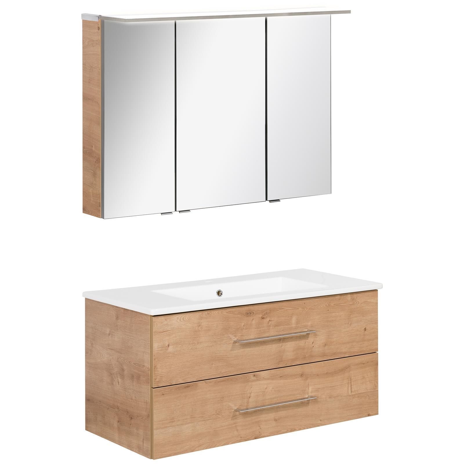 Fackelmann Fackelmann hellbraunes Badmöbel Set hängend 100 cm 2 tlg