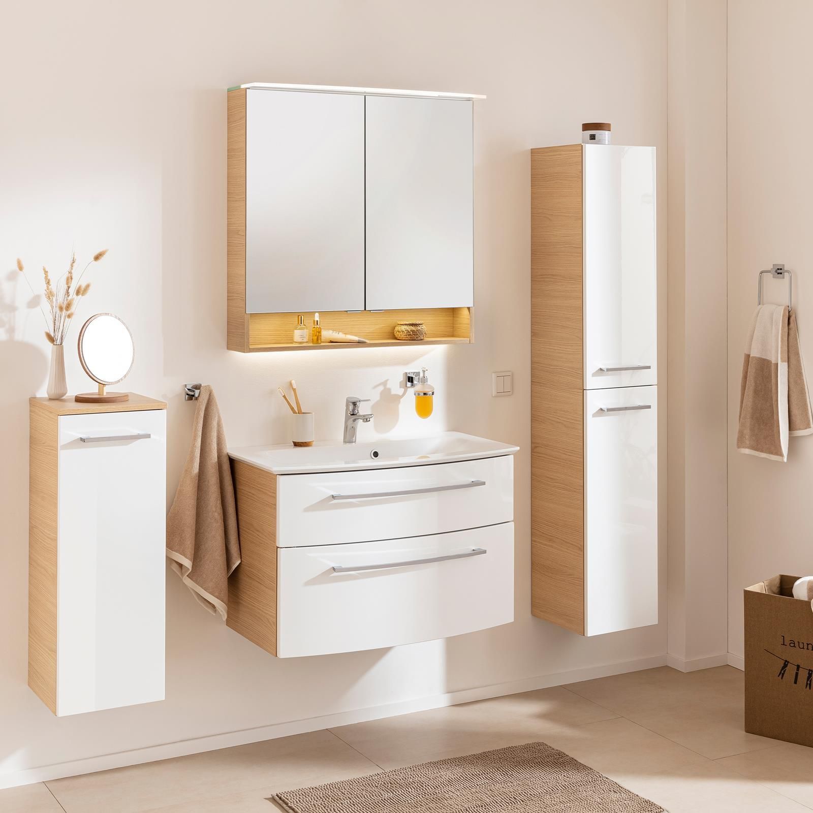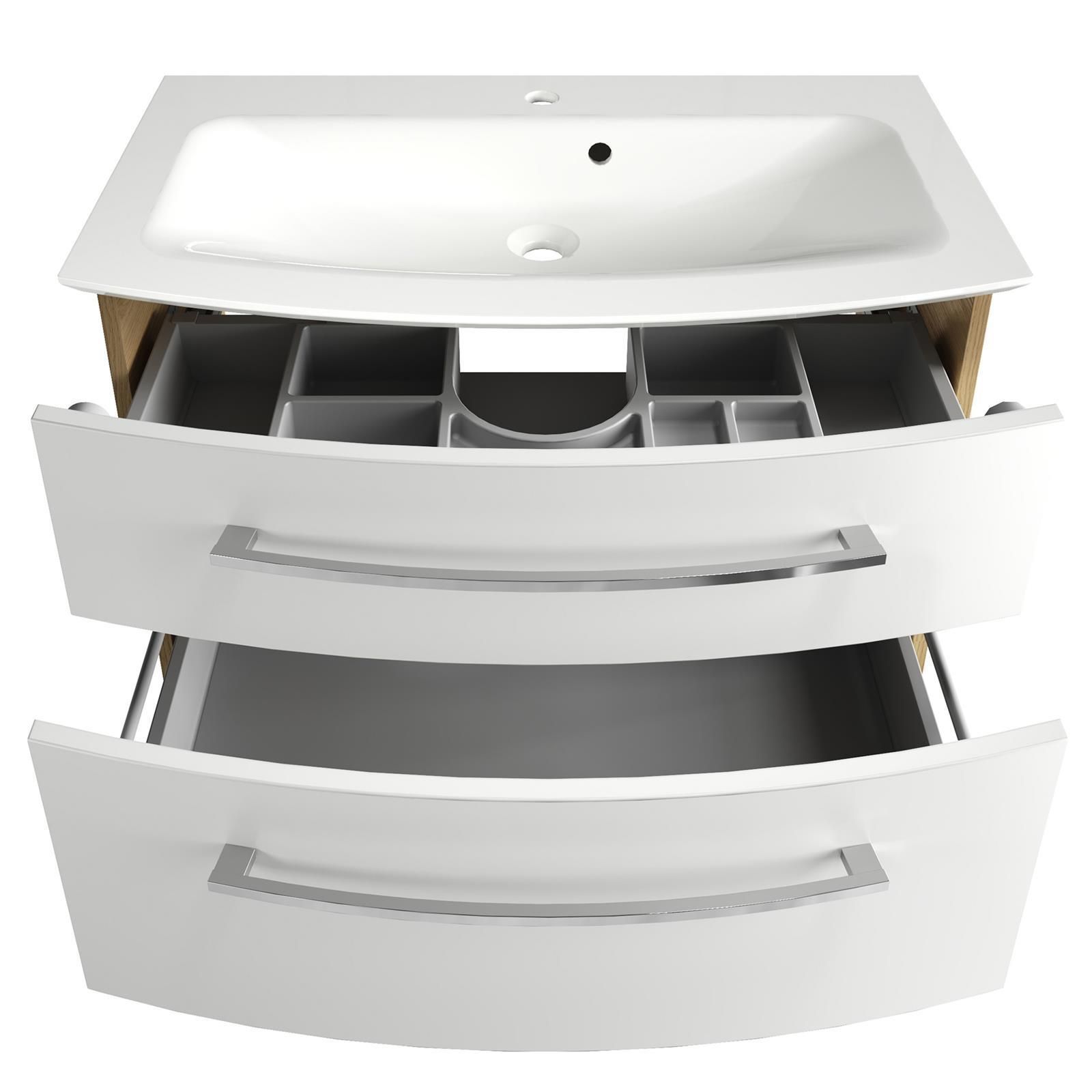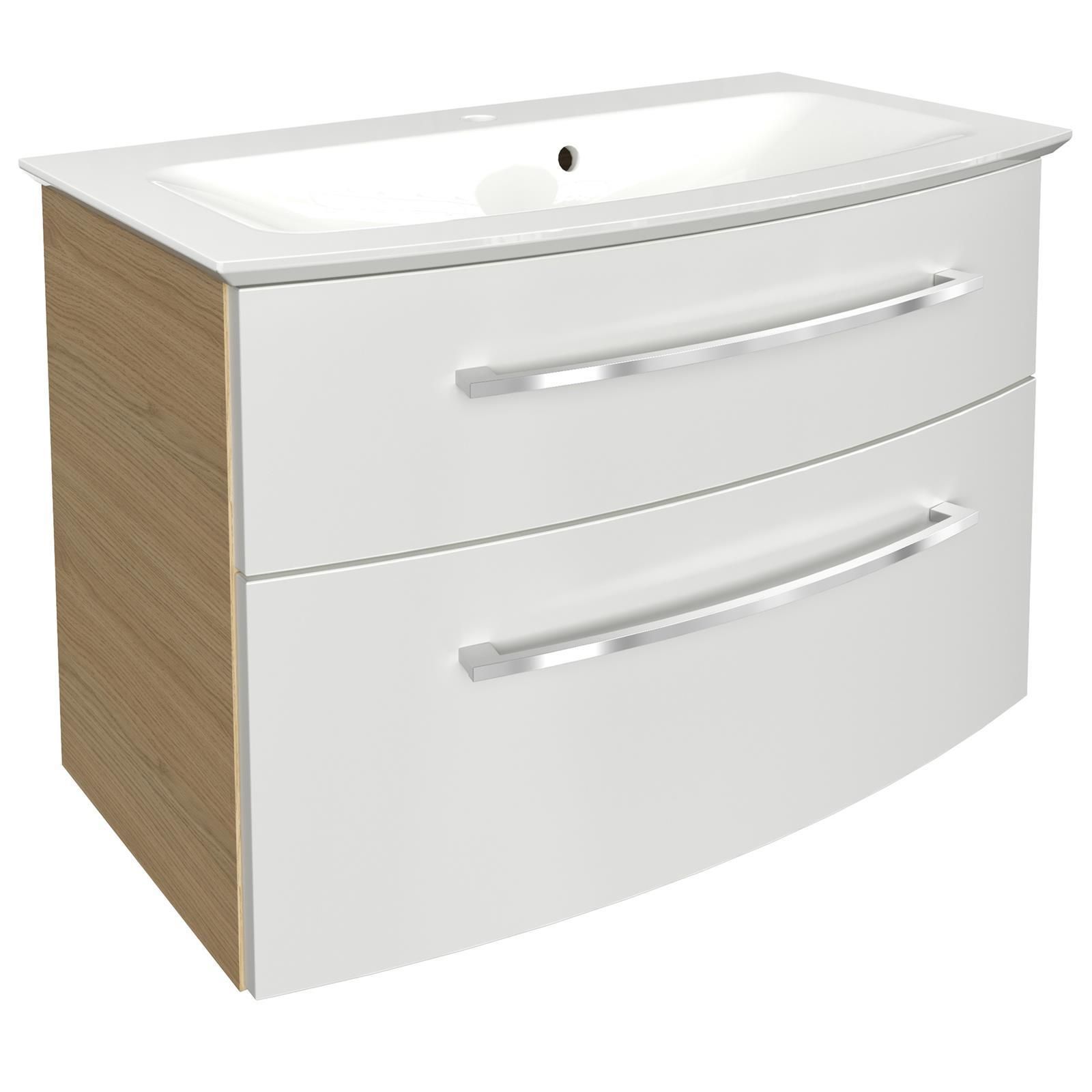 Fackelmann Fackelmann Waschbecken mit Unterschrank 80cm hängend braun weiß Gussmarmorbecken