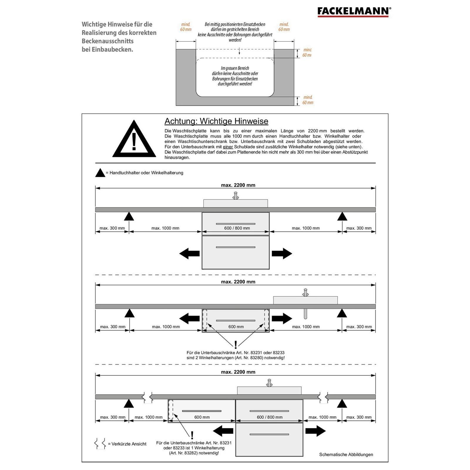 Fackelmann Fackelmann Waschtischplatte aus Holz 60x4x50.5 cm Basisplatte hellgrau Hype 3.0