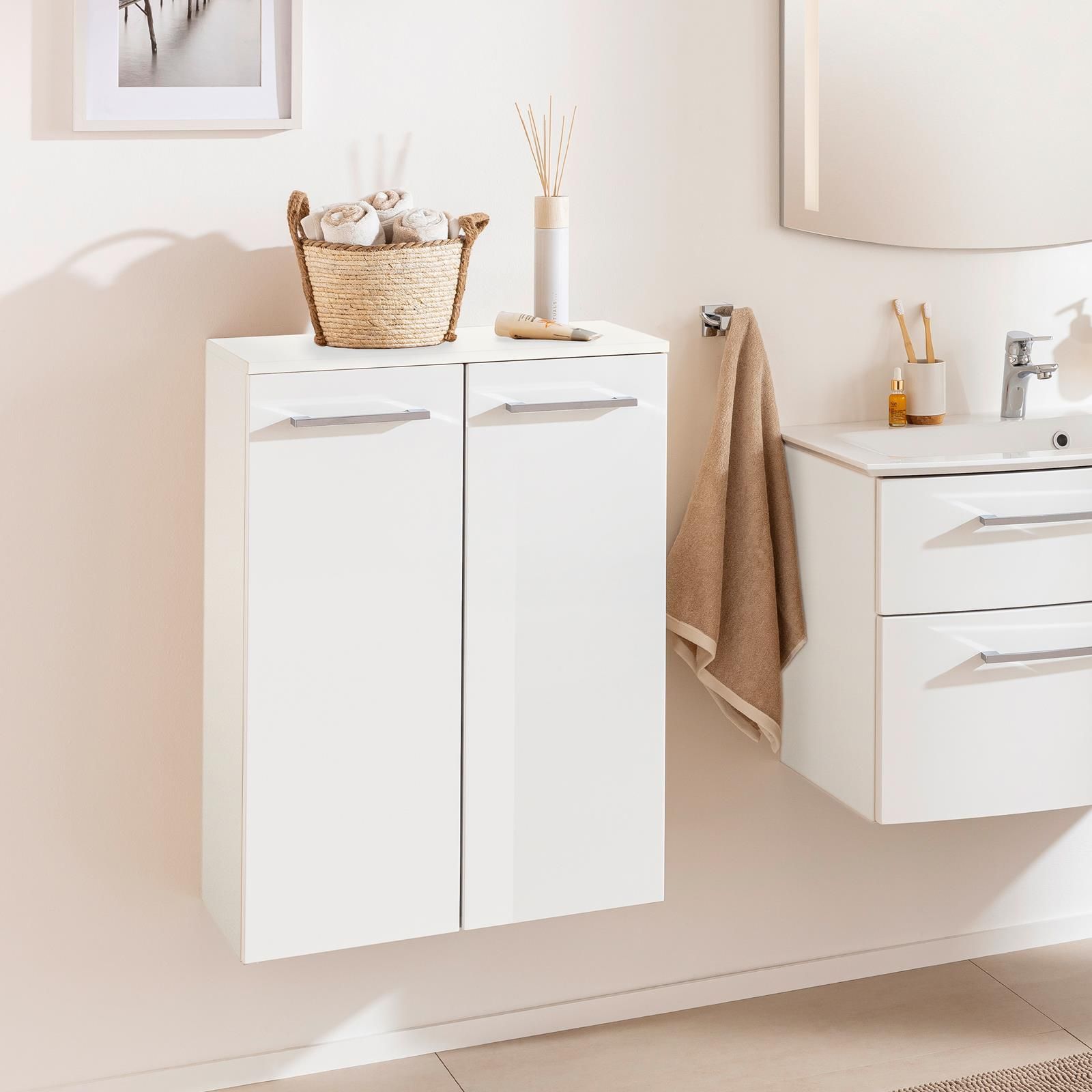 Fackelmann Fackelmann zweitüriger breiter Bad Midischrank 60 cm weiß Doppel-Badschrank