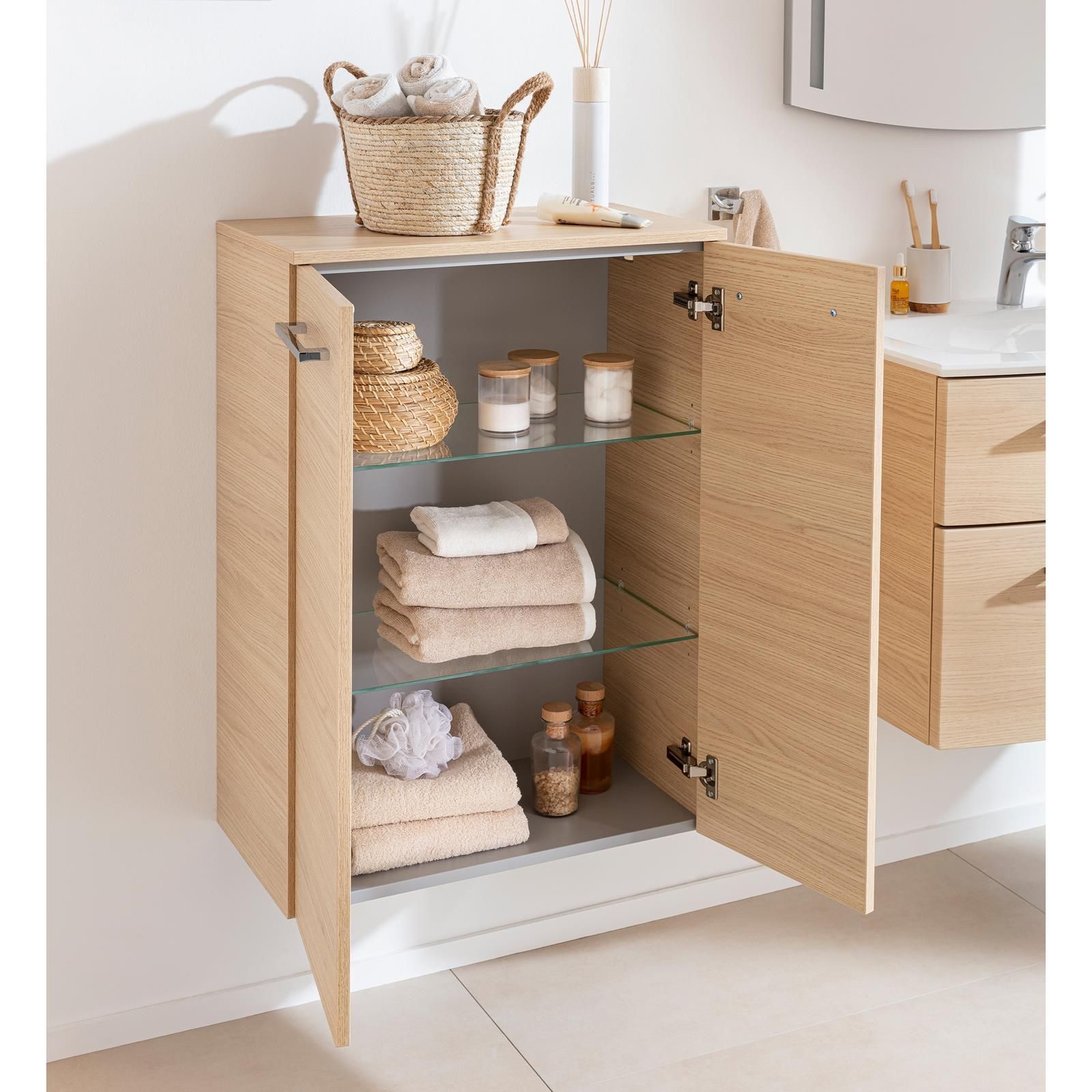 Fackelmann Fackelmann zweitüriger breiter Bad Midischrank 60cm Doppel-Badschrank hellbraun