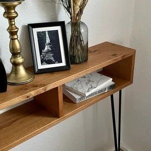 Die Konsole aus deutschem Eichenholz kann vielseitig genutzt werden. Sie bietet mit zwei Fächern praktischen Stauraum und überzeugt durch hochwertige Materialien sowie Stabilität. Jedes handgemachte Stück kann in Farbe und Ausführung variieren. Im Lieferumfang sind die Eichenholzplatte mit Wandhalterung, Metallbeine, Schrauben und zwei Filzunterleger enthalten. Bei Fragen stehen wir Ihnen gerne zur Verfügung. Hinweis: Dekoration im Bild ist nicht enthalten.