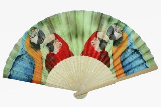 Fächer Papageien, 21 x 38 cm, Ara Tier Tiere, Fasching Karneval Accessoire Handfächer