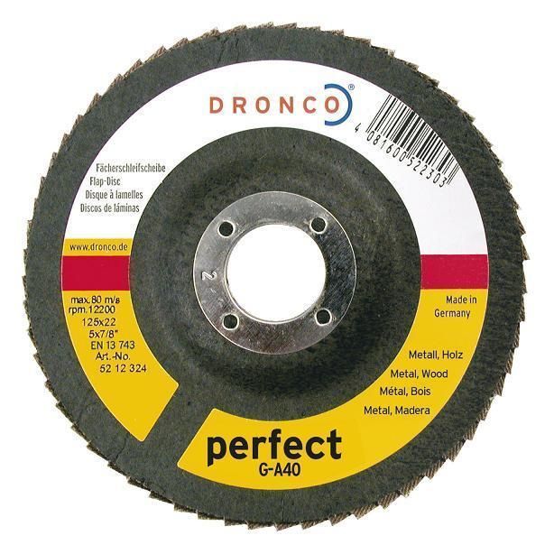 zum Verkauf steht eine Fächerschleifscheibe 180 x 22,23 , von Dronco G-A - 1Stück - Durchmesser:180mm - Lochdurchmesser 22,23mm - Form Bombiert - Schleifmittel: Normalkorund - Korn: 40, 60 oder 80 - gute Schleifleistung vor allem im Flächeschliff - zu verwenden für folgende Materialien Stahl Holz -