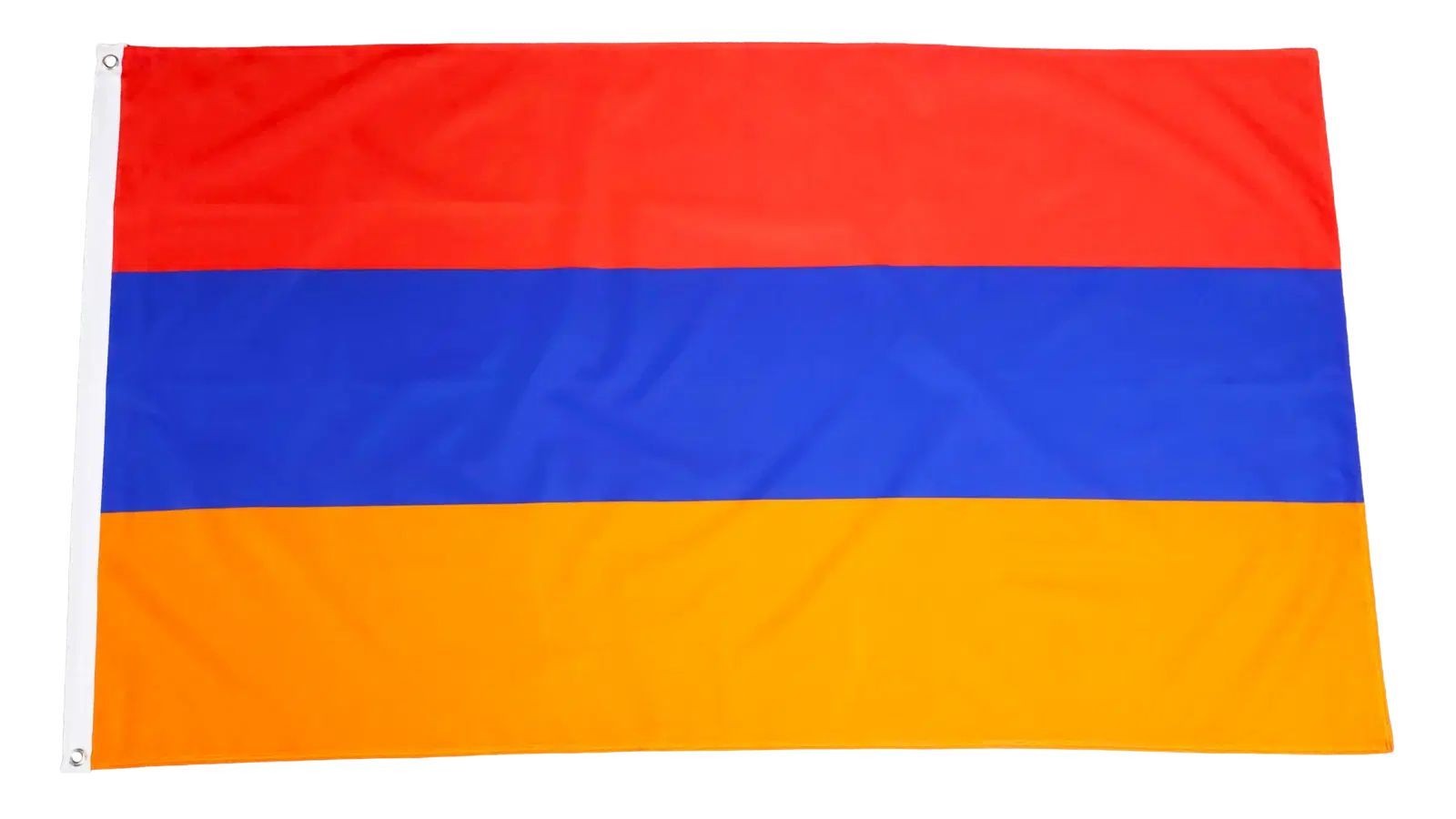 Beschreibung Artikel Details Fahne Flagge Armenien - 90 x 150 cm Die Armenien-Fahne mit den Maßen von ca. 90 x 150 cm zeigt die charakteristischen horizontalen Streifen in Rot, Blau und Orange. Diese Farben symbolisieren Mut, Frieden und Kreativität. Die Fahne besteht aus hochwertigem Polyester, das