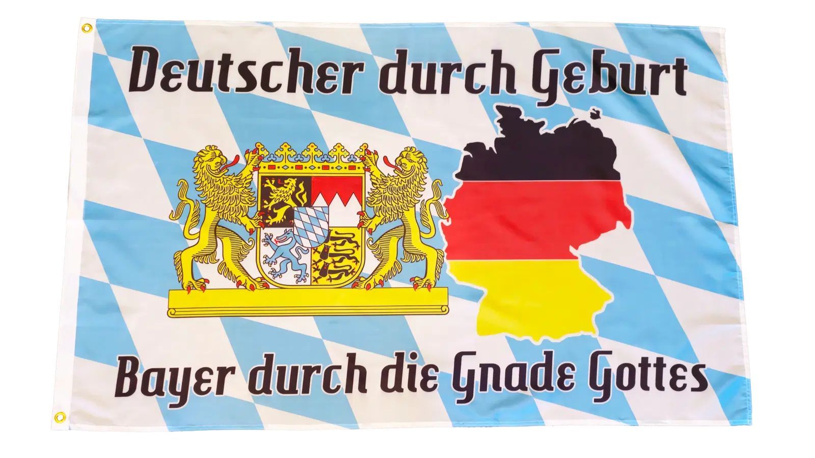 Beschreibung Artikel Details Fahne Flagge Bayern - Bayer durch die Gnade Gottes - 90 x 150 cm Feiere deine Verbundenheit zu Bayern und Deutschland mit unserer 90 x 150 cm Flagge. Der Hintergrund in den bayerischen Farben ist geschmückt mit dem prächtigen bayerischen Wappen und einer stilisierten Deu