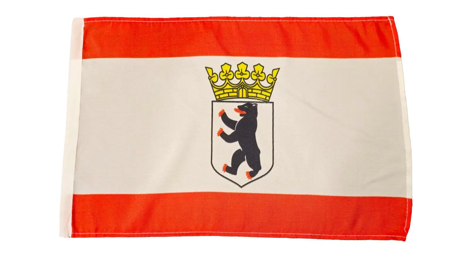Fahne Flagge Berlin mit Bär - Landesdienstflagge - Stockfahne - 30 x 45 cm