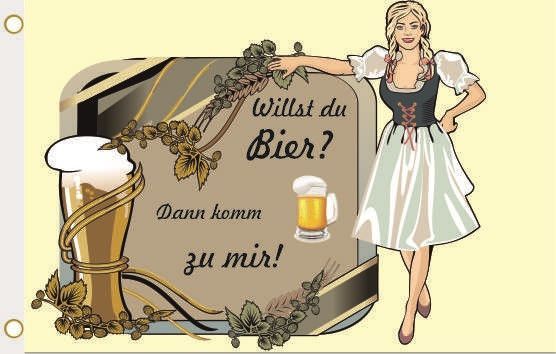 Fahne Flagge Bierfahne Willst du Bier? Komm zu mir! Hissflagge 90 x 150 cm