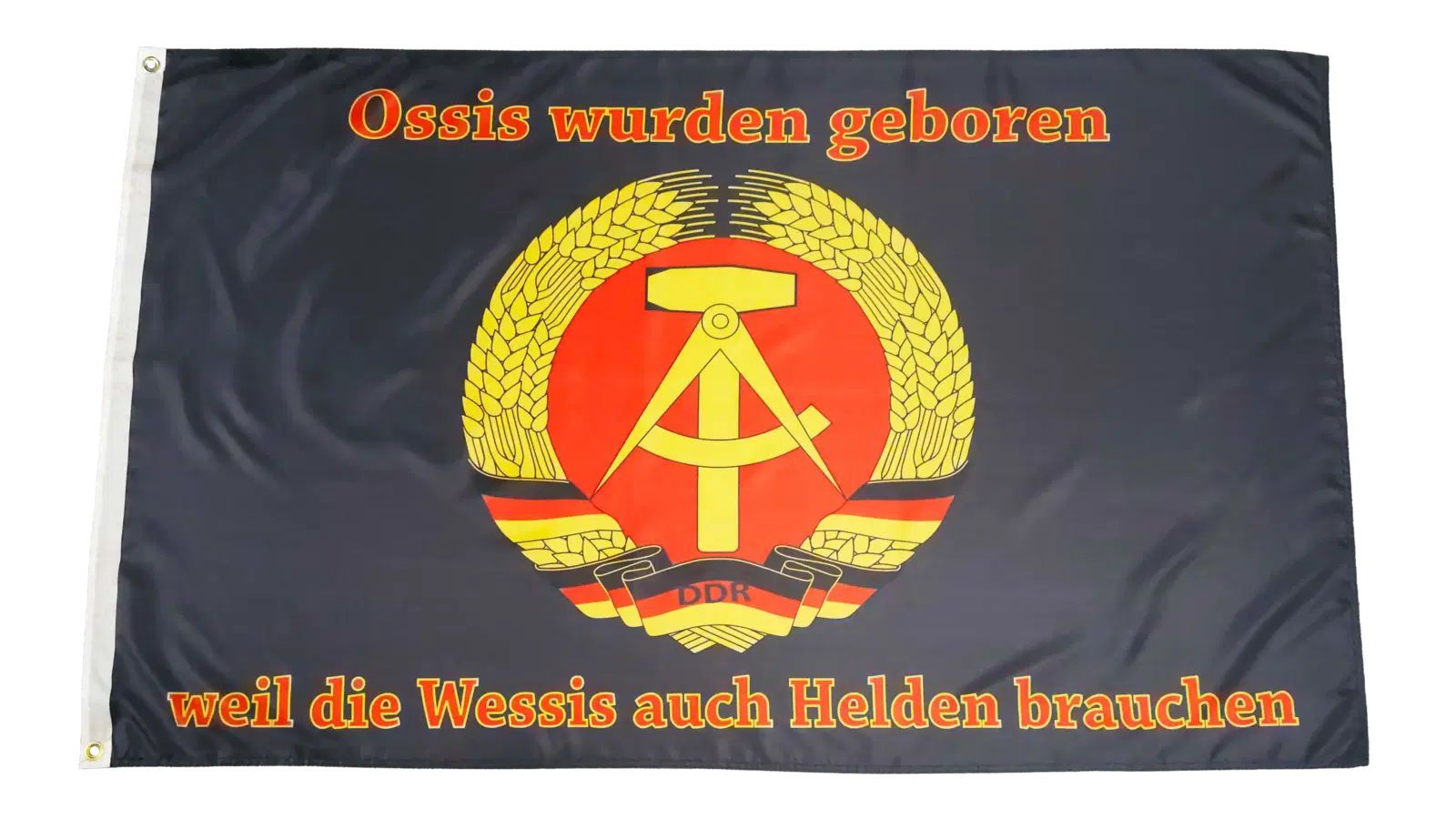 Fahne Flagge DDR - Ossis weil Wessis auch Helden brauchen - 90 x 150 cm