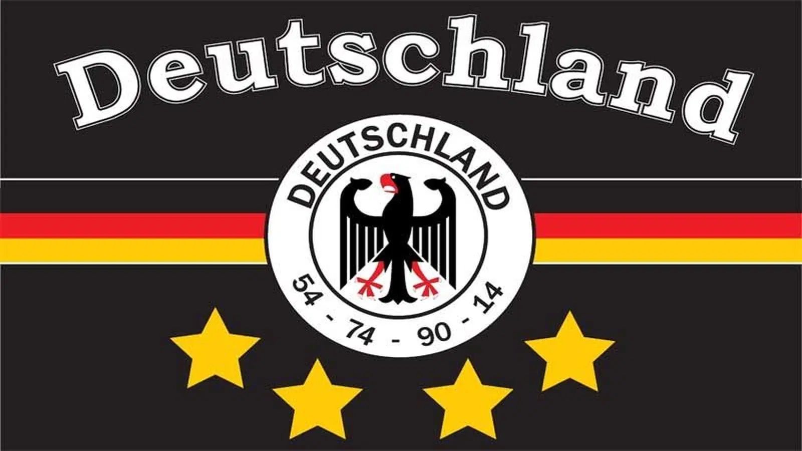 Beschreibung Artikel Fahne Flagge Deutschland Schwarz 4 Sterne - 90 x 150 cm Die Flagge Deutschland Schwarz 4 Sterne zeigt ein kraftvolles, grafisch klares Motiv in Schwarz mit waagerechtem Streifen in Schwarz-Rot-Gold. Im Zentrum befindet sich ein rundes Emblem mit dem stilisierten deutschen Bundes