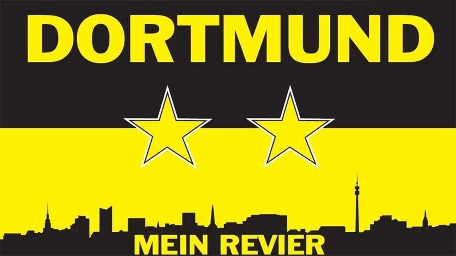 Beschreibung Artikel Fahne Flagge Dortmund mein Revier - 150 x 250 cm Die Flagge Dortmund mein Revier präsentiert sich in einem markanten Design mit den Maßen von ca. 150 x 250 cm. Sie zeigt eine stilisierte Skyline von Dortmund in Schwarz und Gelb, gekrönt von zwei auffälligen Sternen und dem Schri