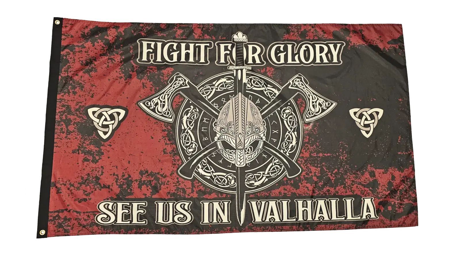 Fahne Flagge Fight for Glory - See us in Valhalla - Wikinger - 90 x 150 cm