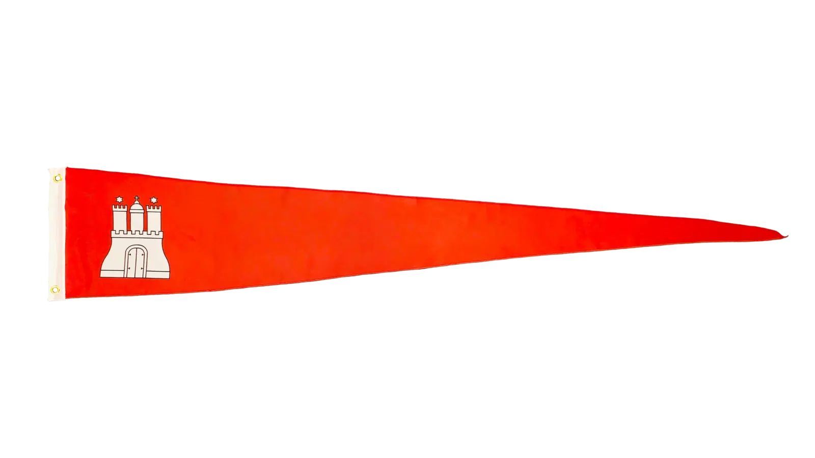 Beschreibung Artikel Details Fahne Flagge Freie und Hansestadt Hamburg Wimpel Langwimpel - 30 x 150 cm Unser Freie und Hansestadt Hamburg Wimpel im Format 30 x 150 cm zeigt das charakteristische Hamburger Tor in Weiß auf einem roten Hintergrund. Dieser Wimpel ist ein Symbol für die Hansestadt Hambur