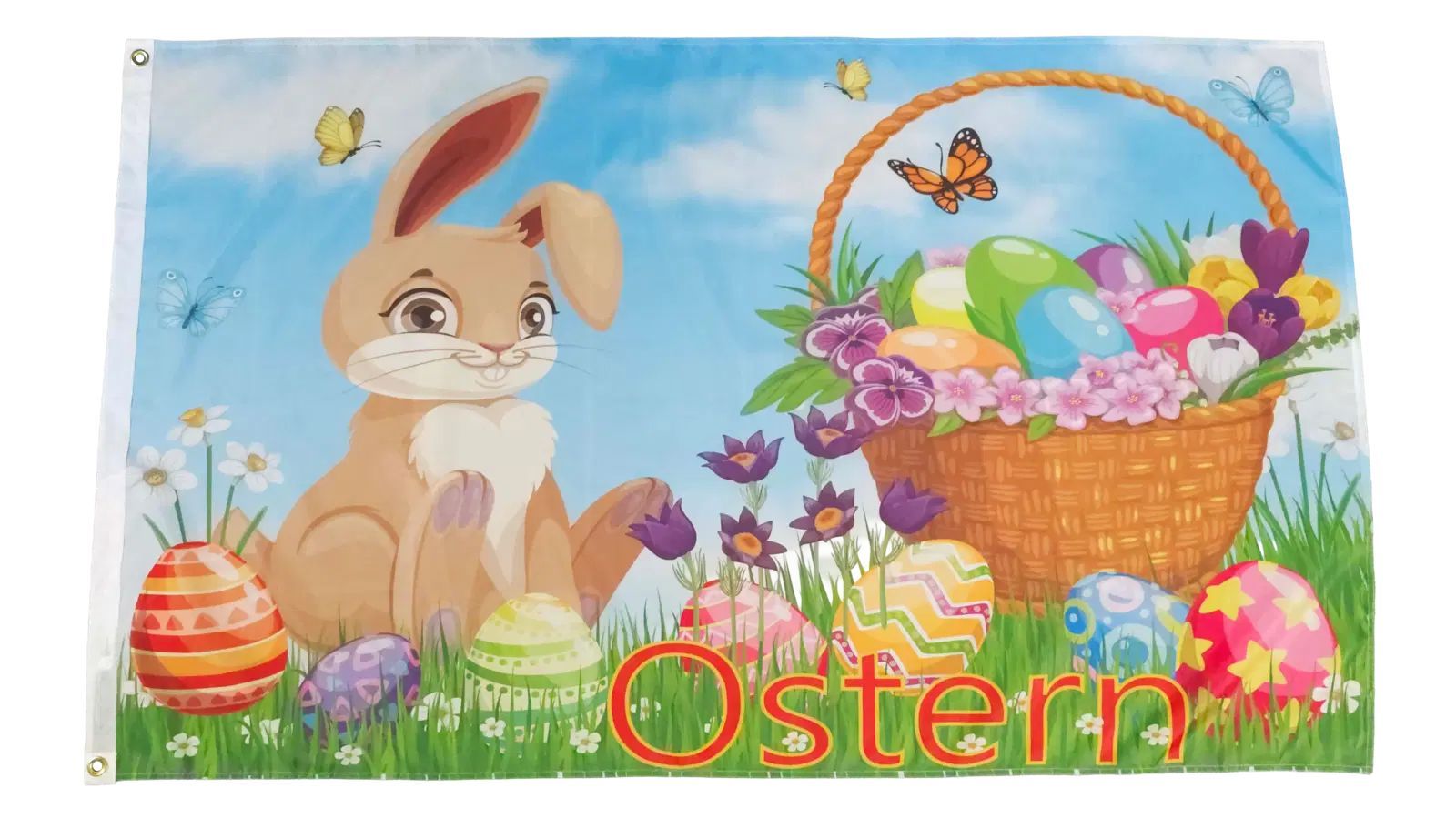 Fahne Flagge Frohe Ostern - Hase mit Korb - 90 x 150 cm