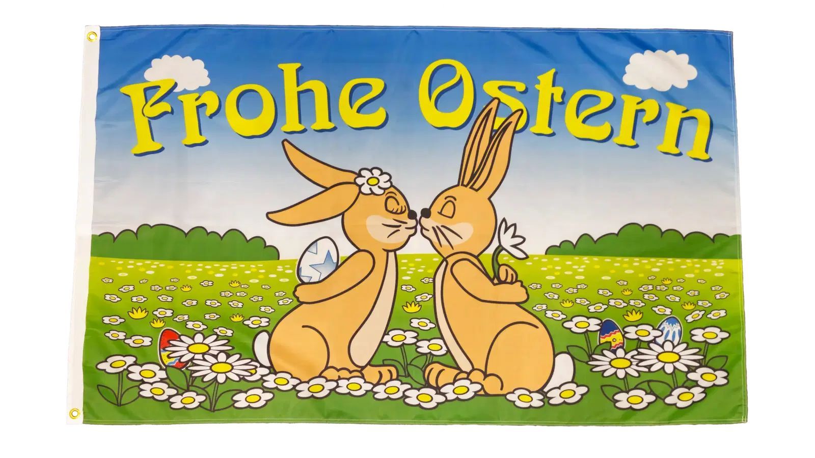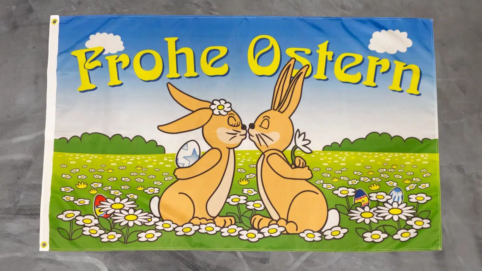 Fahne Flagge Frohe Ostern - Küssende Hasen - Osterhasen - 90 x 150 cm