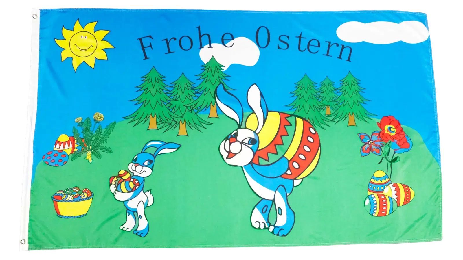 Fahne Flagge Frohe Ostern - Zwei Hasen mit Ei - 90 x 150 cm